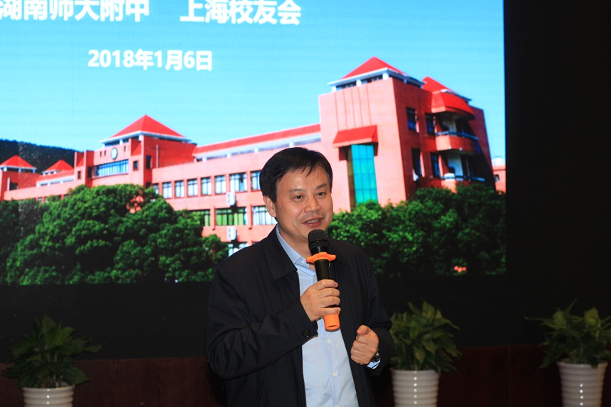 在投“校服牌”、唱校歌等环节后,陈迪勋为大家介绍了母校近年来的发展情况。“公勤仁勇”,“四张名片”是现在附中发展的基石与方向。附中一年比一年好,各行各业人才辈出,教育集团不断壮大,让校友们倍感荣耀,时至今日,每位校友仍然以附中为荣。