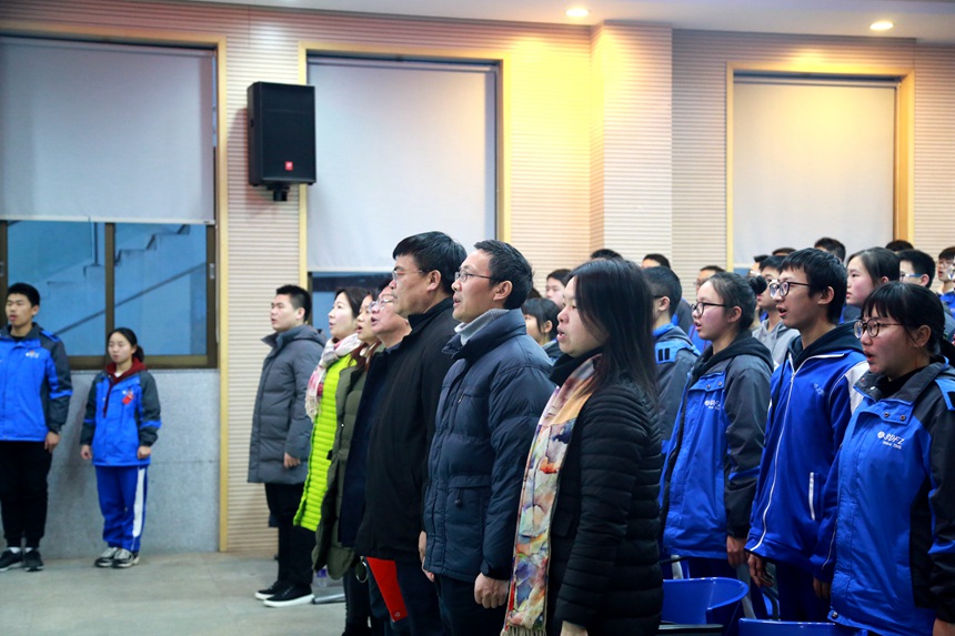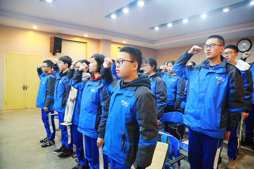 黄月初、陈迪勋、郭在时、李钊、刘淑英、陈兵、杨群英为新团员颁发团员证、佩戴团徽。团委组织部部长戴伊晗带领全体新团员在团旗下进行了庄严宣誓。