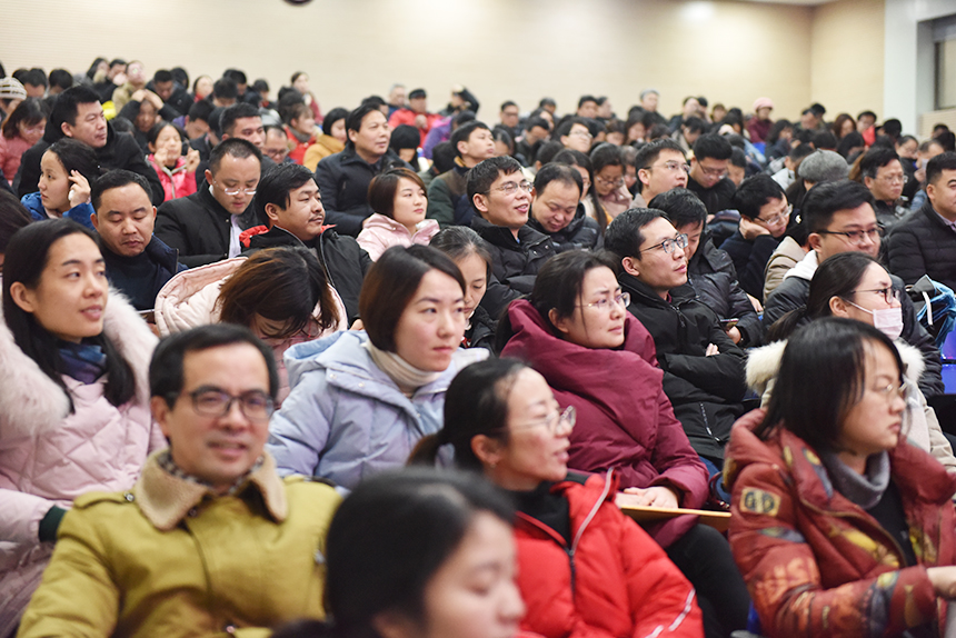 20日上午,培训进入第二板块。谢永红接受省教育厅国培办委托作动员讲话。他从党和国家新要求、教育发展新形势、师资培训新态势、教师发展新趋势等角度,全面阐述了全员培训的重要性和必要性,要求全体教职工珍惜学习培训机会,善于学习、勤于反思并乐于行动,做好“学、思、悟、践”四篇文章;党委书记黄月初说明了全员培训突出党建和师德师风建设的必要性,强调了新时期人民教师坚持政治学习、党课、主题党日活动的重要性,随后,作了题为《新时代改革开放再出发》的专题讲座。他从全面回顾改革开放40年的光辉历程、创新展示改革开放40年的伟大功绩、深刻总结改革开放40年的宝贵经验、及时发出新时代改革开放的动员令等角度,详尽解读了习近平在庆祝改革开放40周年大会上重要讲话的基本精神,并结合学校工作实际,发出了“改革开放我们再出发”的号召。张静桃、莫莉、谢良等老师分别就法国教育考察、加拿大短期研修、新疆考察交流等基本情况和心得体会与全校教职工作了分享。