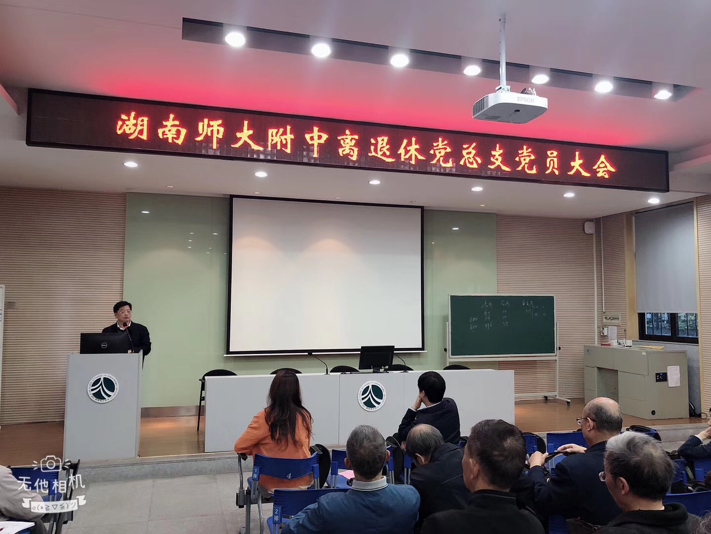 活动第一阶段在附中图书馆报告厅开展。党委书记黄月初作了讲话,主要讲述了四点:1、要求党员严格按照党的组织条例开展工作。2、所有的党员都应有强烈的身份意识,不仅在组织上入党,在行动上也要入党,以一个党员的标准严格要求自己,传播正能量。3、要按照党章参加组织活动。4、离退休党员要做到活到老学到老。师大的党员学习平台为我们提供了好的学习服务,希望大家充分利用平台学习。随后,离退休总支书记周申令同志代表党总支委向大会述职,对过去一年的支部工作进行了全面总结。