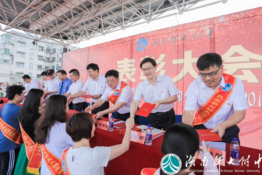 校长谢永红,党委书记黄月初,党委副书记彭荣宏,副校长兼工会主席陈迪勋,副校长苏建祥、蔡任湘、杜军(挂职),党委委员、校长助理廖强,党委委员、校长助理陈胸怀等校领导,法治副校长谢勇,洪山集团执行董事高开发,校友冯国强,校家委会副主任刘红荣等嘉宾出席大会并担任颁奖嘉宾。全体教职工,高一、高二年级学生参加大会。大会由团委书记李钊和1825班学生李诗绪主持。