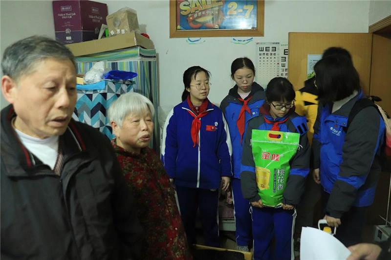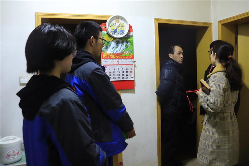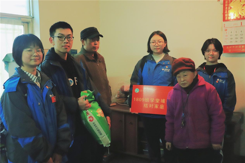 在马路对面,志愿者们又看望慰问了王宇生一家。王宇生因病不能从事体力劳动,靠打零工艰难撑起家庭生计,居住的房屋简陋狭小。同学们真诚的笑容却让狭小的房屋温馨满满。