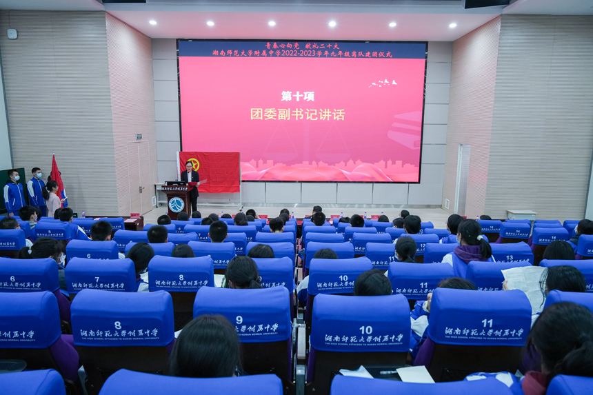 伴随着《中国共青团团歌》激昂的旋律,同学们唱响团歌,九年级离队建团仪式圆满成功。