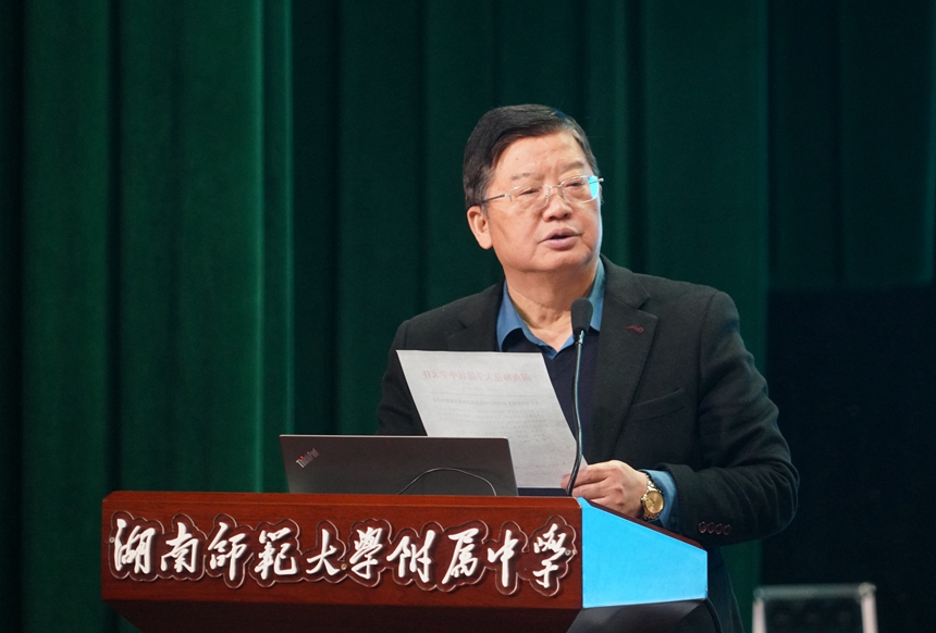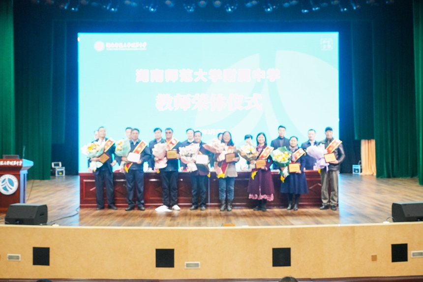 校长谢永红代表学校向退休教师表示感谢。他给予16位退休老师职业生涯以高度评价,并向他们送上满满祝福。最后,他号召全体老师向前辈学习,向榜样学习,共同创造附中更加美好的明天。