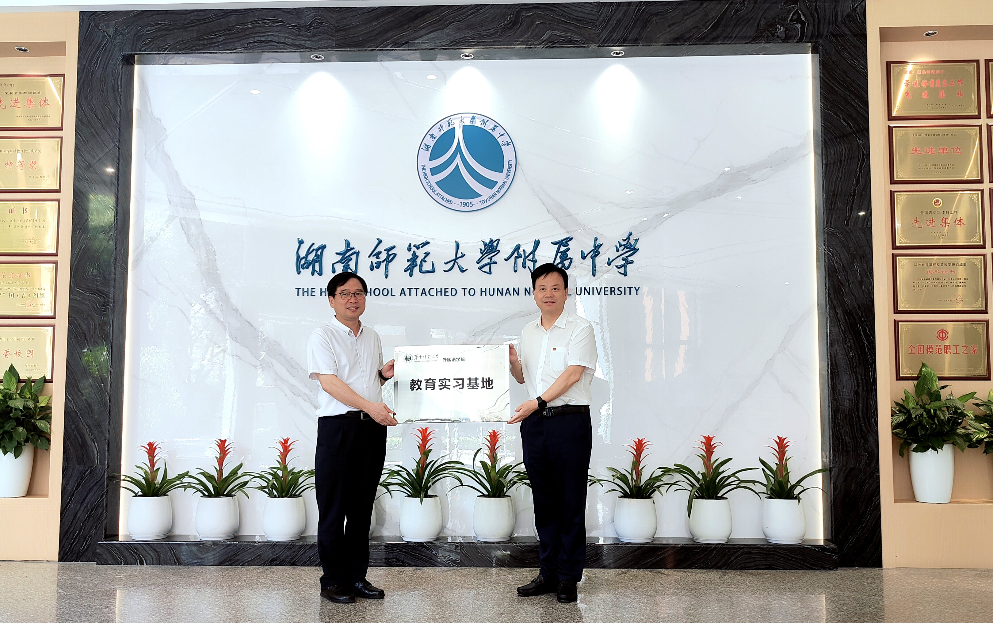 新闻中心 附中新闻 通知公告 最新动态 教育视点 集团学校新闻联播 媒体附中 工作安排 微信附中 华中师范大学与我校共商大中衔接育人新路径 发布:管理员 来源:科研与教师发展处 日期:2025-06-16 人气:分享到: 6月16日,华中师范大学副校长任友洲一行访问我校,共同举行共建阅览室暨教育实习基地揭牌仪式,并围绕大中学段衔接育人进行座谈交流。我校党委书记谢永红、副校长苏建祥及相关部门负责人出席活动。 仪式上,任友洲代表华中师范大学向我校授予“教育实习基地”牌匾,充分肯定我校在师资培养与教育实践领域的贡献。双方领导共同为“华中师范大学-湖南师大附中共建阅览室”揭牌。该阅览室由两校联合打造,将依托华中师范大学《中学生英语》等学术资源,拓展学生阅读视野。 座谈会上,双方聚焦“高等教育与基础教育协同育人”主题,深入探讨学科竞赛辅导、课程资源共建、学术素养早期培育等大中衔接路径。任友洲表示,此次合作将深化两校在人才培养、师资培训、实习基地建设等领域的战略合作。谢永红强调,我校将持续加强与优质高校联动,为学生搭建多元成长平台,同时助力高校培养高素质专业化教师队伍。 仪式及座谈后,任友洲一行在谢永红陪同下参观了我校校史馆、攀登广场等文化地标,深入了解百廿办学传统。 此次合作标志着两校协同育人进入新阶段。未来,我校将依托高校优质资源,探索贯通式人才培养新模式,为学子卓越发展注入动能,并为教育实习基地建设提供创新范本。 上一篇:长沙市副市长周志凯实地调研我校大泽湖校区建设工作 下一篇:全省第一!我校生物竞赛组13名学子入选生物竞赛湖南省代表队 通知公告 更多 湖南师范大学附属中学2025年第二 湖南师范大学附属中学2025年第二 湖南师范大学附属中学2025年第二 湘人社办函〔2025〕46号计算机应用 中国教育发展战略学会教育评价专 湖南师范大学附属中学2025年招聘 最新动态 更多