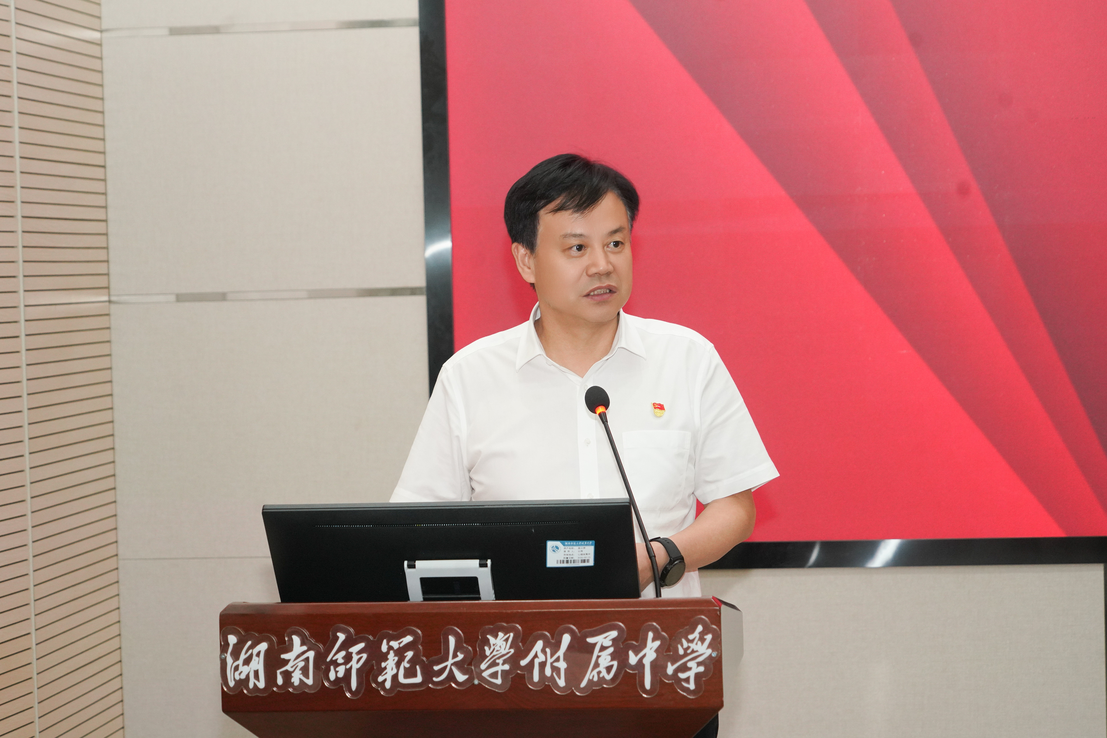谢永红代表学校党委以《赓续百廿初心 筑牢育人根基》为题作报告,他向获得“光荣在党50年”纪念章的老党员致以崇高敬意,向受到表彰的先进集体和优秀个人表示热烈祝贺,向全校共产党员致以诚挚的问候。他总结回顾了近年来学校党建工作和各项事业发展取得的突出成绩,他表示,过去一年学校各项事业实现跨越式发展,党建引领成果卓著,成绩的取得都是广大党员干部和师生员工团结拼搏、锐意进取的结果。今年是“十四五”收官之年,也是“十五五”的谋划之年,面对建设教育强国、科技强国、人才强国的时代重任,必须以更高的政治站位、更强的历史主动、更大的责任担当,奋力谱写学校高质量发展的新篇章谢永红要求,各党支部和广大党员同志们要强化政治统领,把稳办学方向;夯实组织基础,筑牢战斗堡垒;严明纪律作风,涵养清廉生态;勇担发展使命,推动改革攻坚。谢永红强调,全体党员要继续在习近平新时代中国特色社会主义思想指引下,大力弘扬伟大建党精神,在学校党委的坚强领导下,敢于担当、锐意进取,奋力开创学校事业高质量发展新局面,为培养担当民族复兴大任的时代新人贡献附中力量。