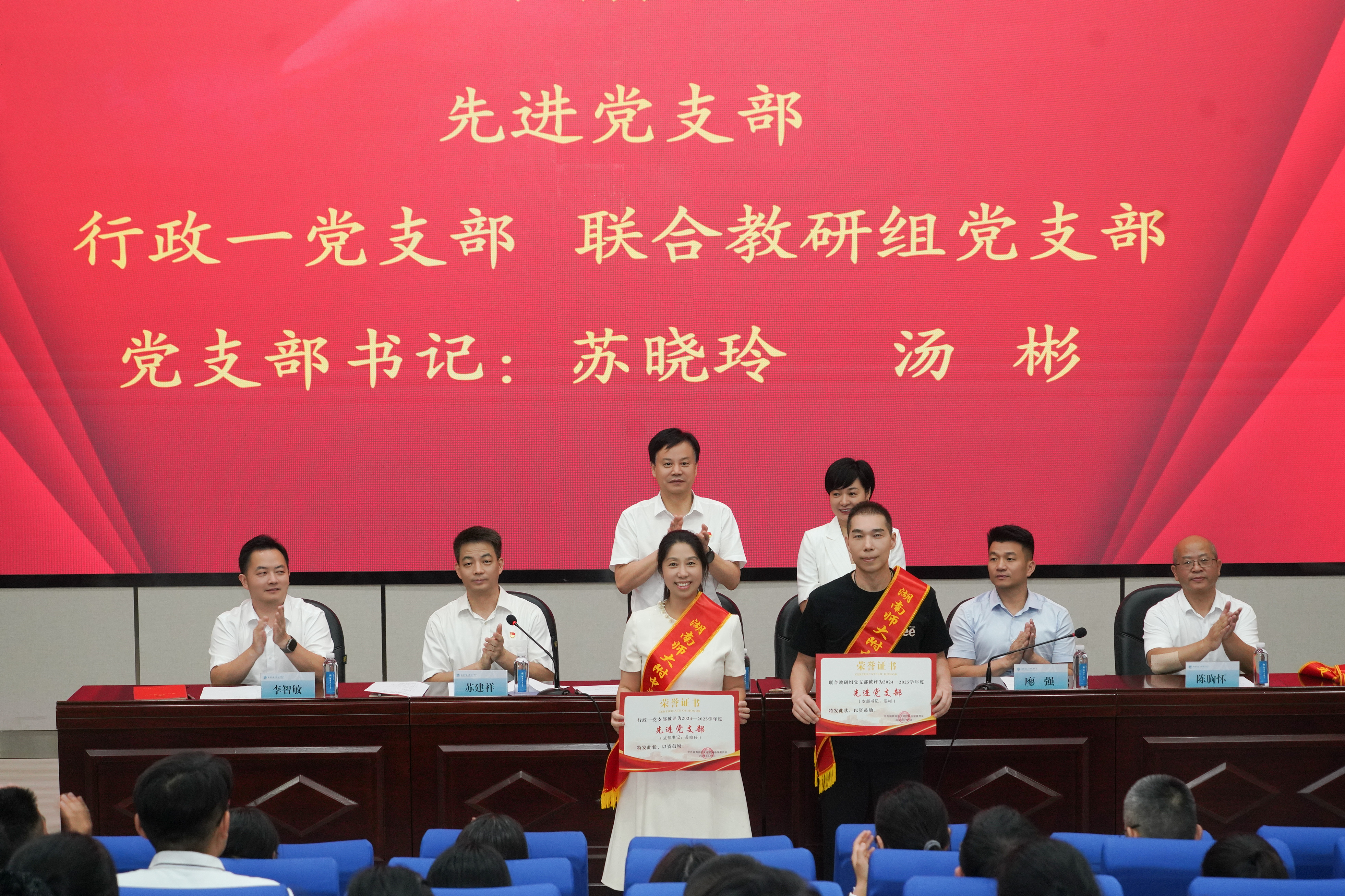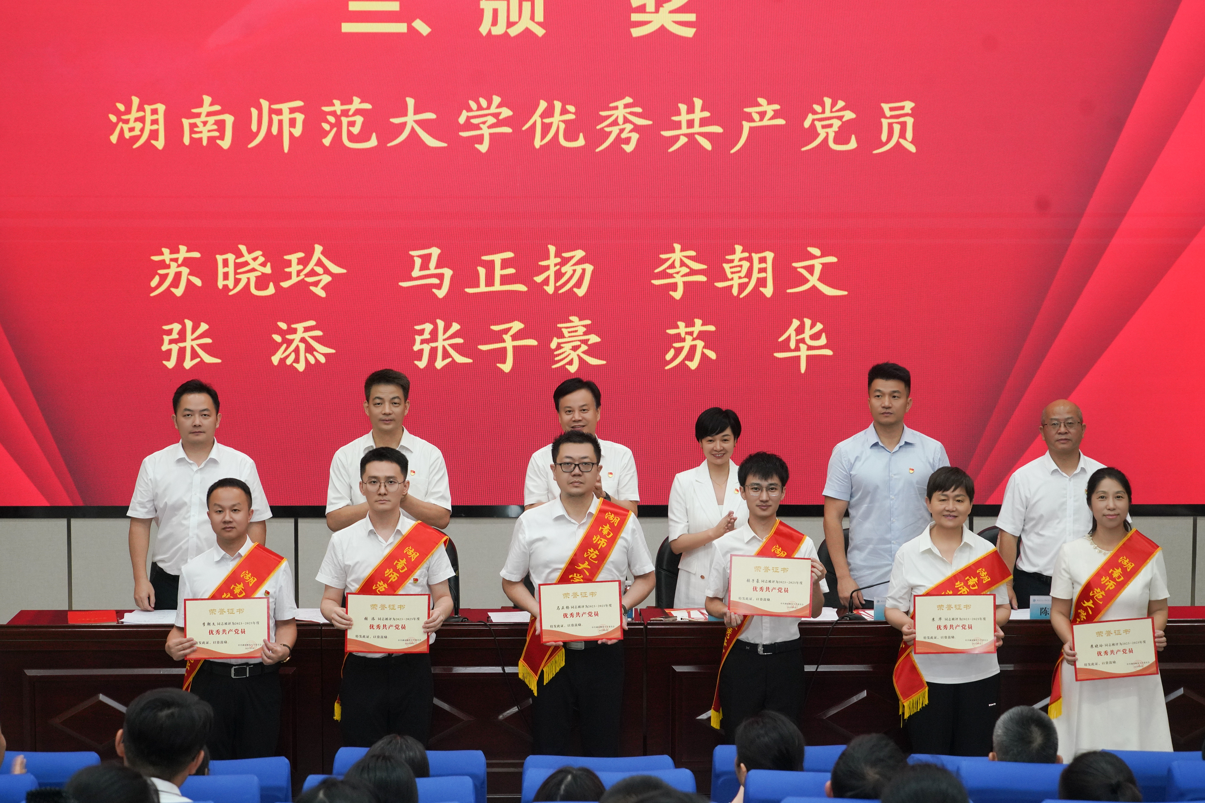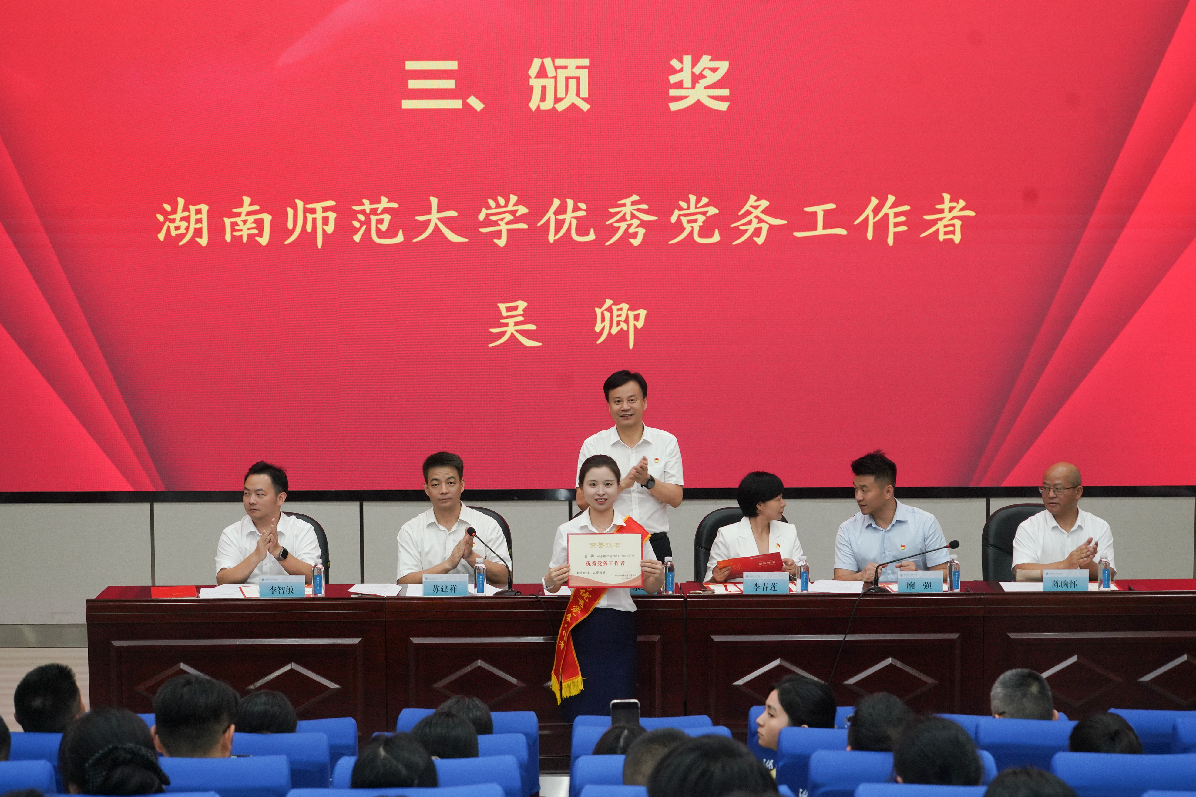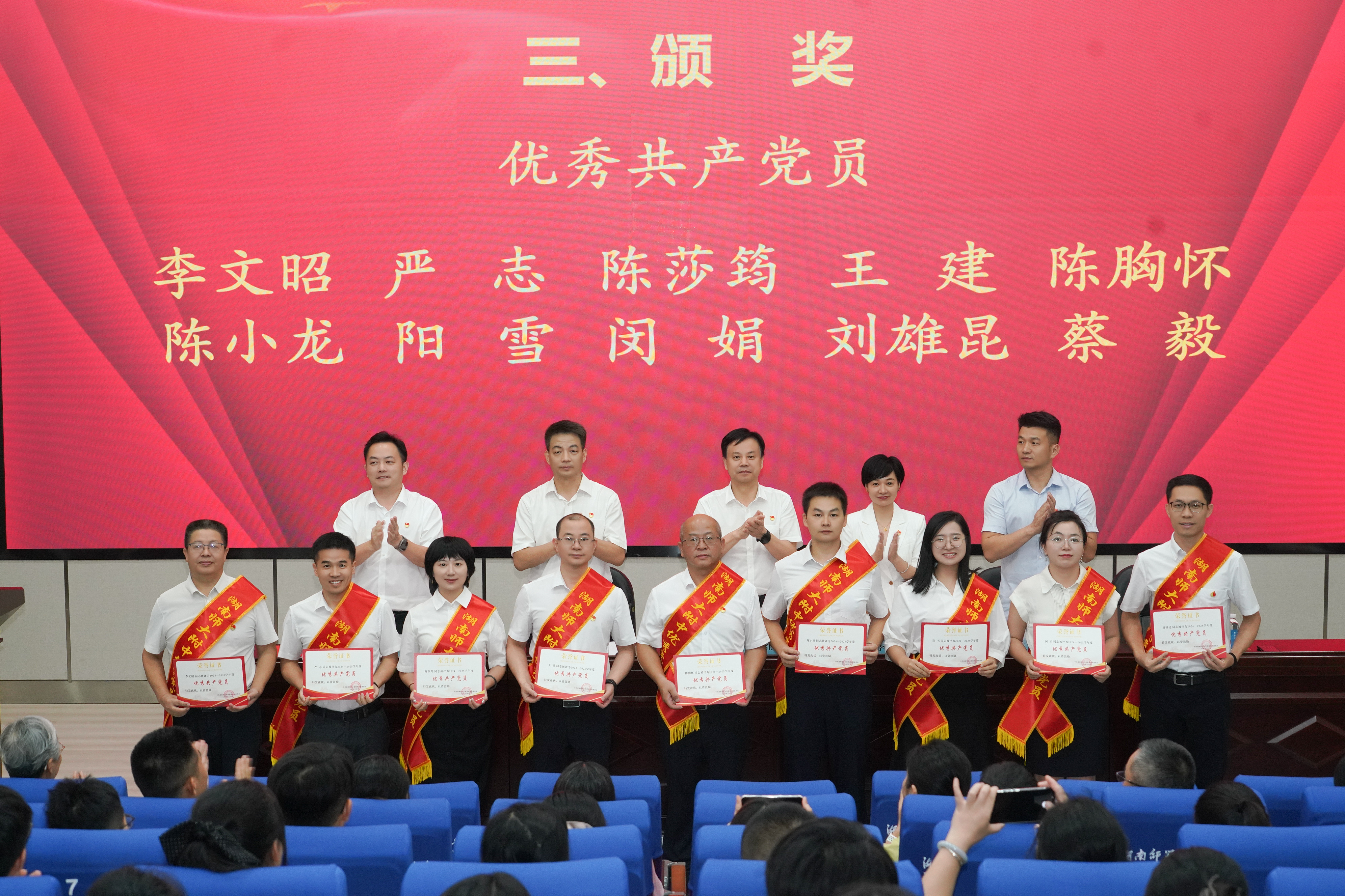 党委委员、副校长李智敏宣读2024-2025学年度新发展党员名单,党委委员、纪检书记李春莲带领全体党员重温入党誓词。