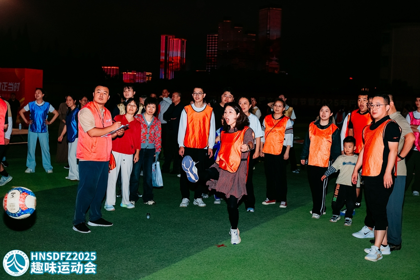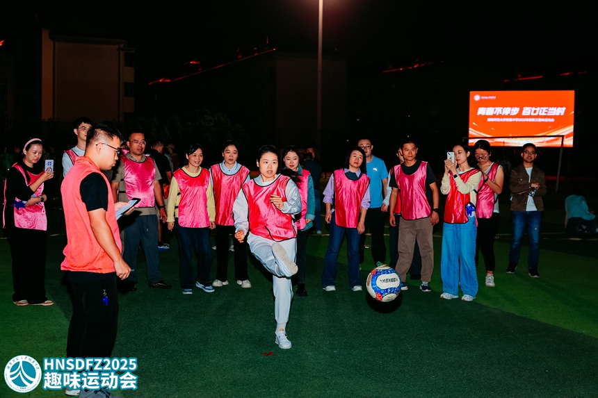 本次运动会以“轻松参与、快乐竞技、团结奋进”为核心宗旨,设置了赶大鹅、灌篮高手、龟兔赛跑、足球九宫格、枕头大战五个集体项目,兼顾趣味性与协作性,吸引了全体教职工积极参与。各参赛队伍提前组建团队,推选领队与教练,利用课余时间开展针对性训练,为比赛做好充分准备。 当晚18:30,各队伍陆续抵达赛场完成签到检录,队员们精神饱满、斗志昂扬,统一的着装彰显了团队的凝聚力。19:00,随着裁判哨声响起,运动会正式拉开帷幕。赶大鹅项目中,男女搭档默契配合,用扇子巧妙引导充气鹅接力前行,赛道上不时响起阵阵欢呼;灌篮高手赛场,队员们精准投射、快速传球,在两分钟内全力冲刺进球数量;龟兔赛跑环节,各队队员同心协力抬起道具,迈着整齐的步伐向终点奋进,充分展现了团队协作的力量;足球九宫格前,教职工们精准发力,瞄准分值区域踢出每一脚,考验着技巧与判断力;枕头大战更是将现场气氛推向高潮,大家在规定区域内尽情投掷,释放工作压力,赛场变成了欢乐的海洋。