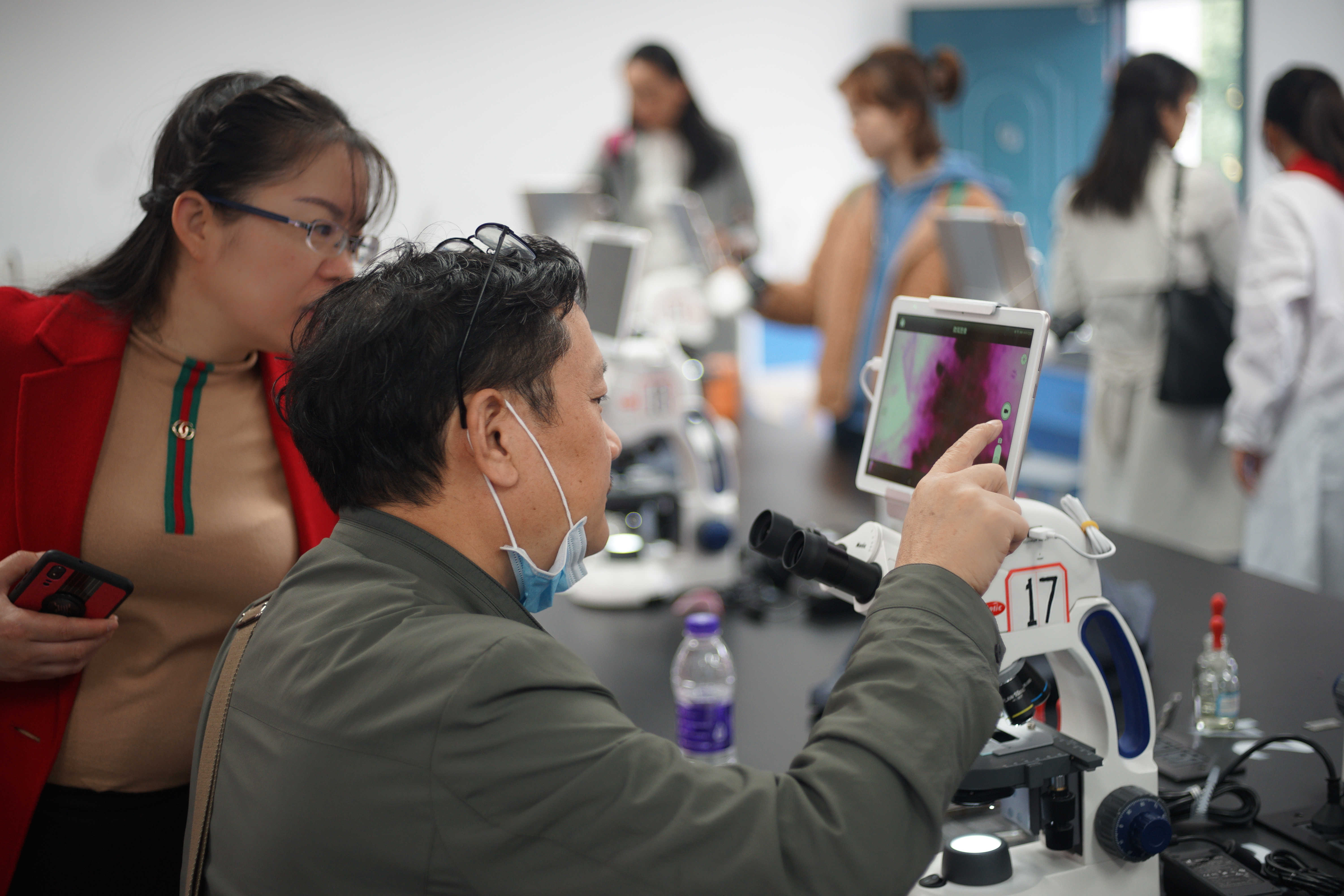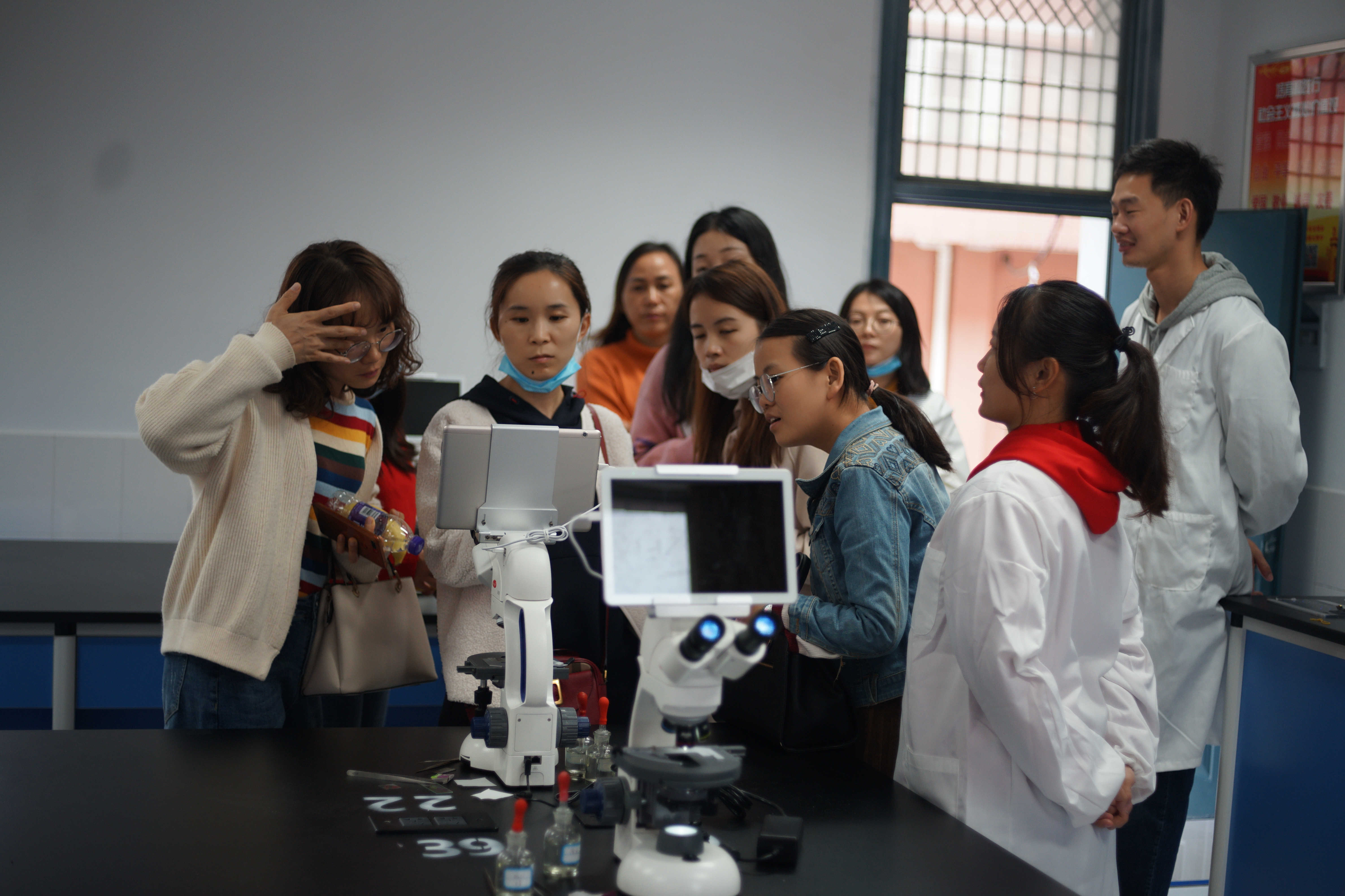 在湖南师大附中生物教研组长杨群英老师的引领下,与会教师前往生物实验室进行参观和交流。