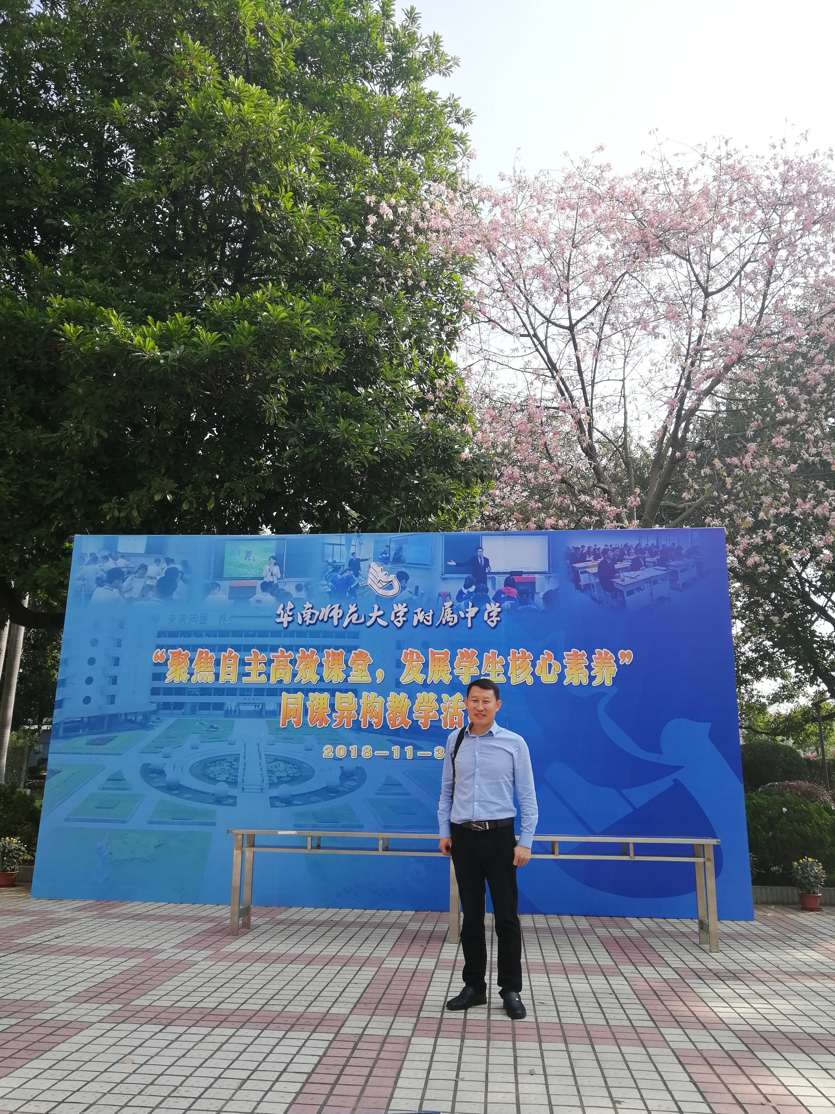 参与同课异构的老师还有华南师大附中的林琪老师、广东广雅中学的全永如老师,同课异构的课题为高三一轮复习课《解析几何中的最值问题》。朱修龙老师从精心创设自主演练的问题,为课堂中合作探究环节打好铺垫,通过巧妙变式,引起学生对知识探求的欲望,最后通过巩固提升环节,当场检测学生对知识的掌握情况,并对高考规范答题明确了要求,整堂课各教学环节始终将学生置于主动参与的地位。朱老师在课堂上展现的先进教学方法、高超的教学技巧、精彩的教学语言赢得了参加研讨交流活动老师的高度赞扬。