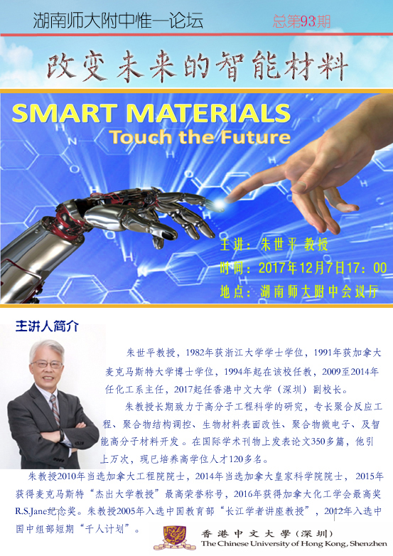 新闻中心 附中新闻 通知公告 最新动态 教育视点 集团学校新闻联播 媒体聚焦 工作安排 微信附中 惟一论坛第93期:改变未来的智能材料 发布:课程与教学处 来源:未知 日期:2017-12-03 人气:分享到: 上一篇:惟一论坛第92期:外科学的创新发展之路 下一篇:关于2017年年终关账的通知 通知公告 更多 湖南师范大学附属中学食堂物资供 湖南师范大学附属中学2024年门面 2024年湖南师大附中桐梓实验中学 湖南师范大学附属中学2024年公开 湖南师范大学附属中学化学实验室 湖南师范大学附属中学2024级七年 最新动态 更多