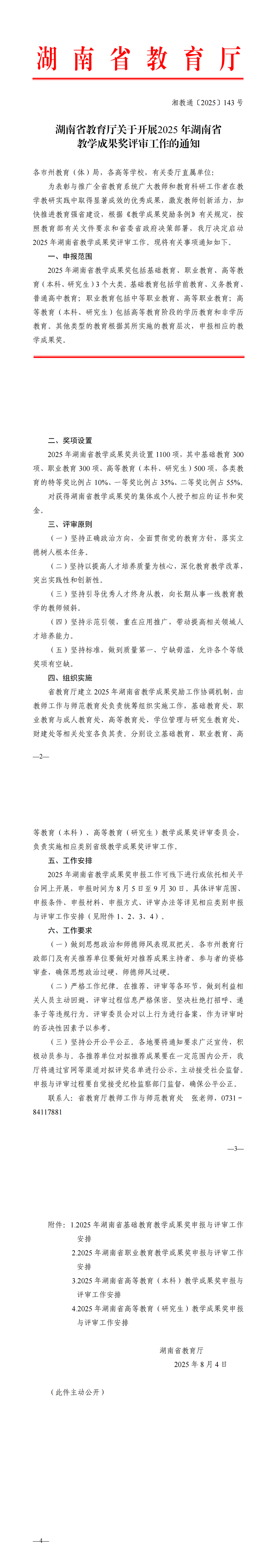 新闻中心 附中新闻 通知公告 最新动态 教育视点 集团学校新闻联播 媒体附中 工作安排 微信附中 湖南省教育厅关于开展2025年湖南省教学成果奖评审工作的通知 发布:系统管理员 来源:未知 日期:2025-08-17 人气:分享到: 上一篇:湖南师范大学附属中学2025级新生军训服采购项目比选公告 下一篇:没有了 通知公告 更多 湖南师范大学附属中学2025年第二 湖南师范大学附属中学2025年教师 关于开展“科研优秀奖”评选活动 湖南师大附中2025-2026学年度第一学 湖南师范大学附属中学2025级新生 湖南师范大学附属中学大泽湖校区 最新动态 更多