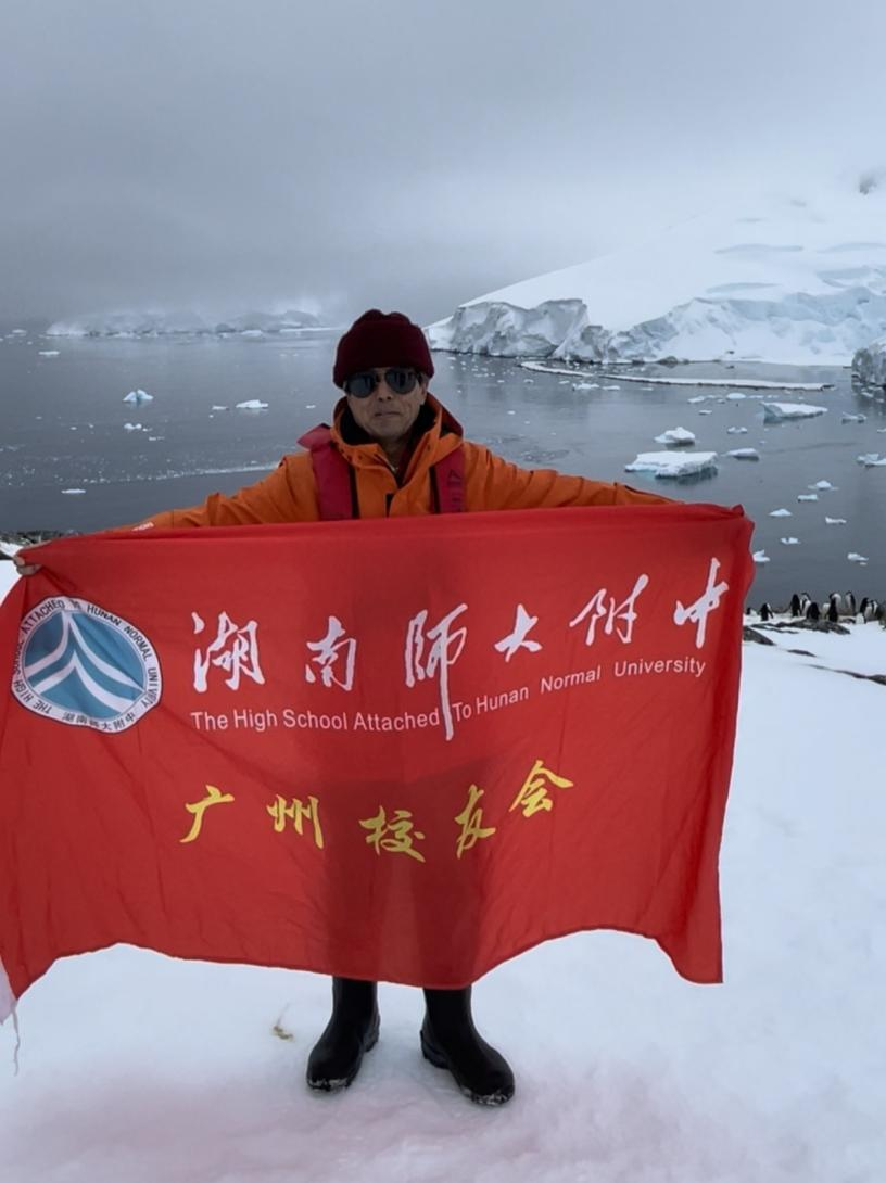 新闻 校友动态 湖南师大附中广州校友会会旗飘扬在南极冰原 发布:校友天地 来源:未知 日期:2025-11-25 人气:分享到: 美丽南极,地球上人类最后一片净土,令人神往而珍爱。当湖南师大附中广州校友会旗帜飘扬在白雪皑皑的南极冰原,附中人对人类共同美好家园的深情便迎风激荡。 1984年我国首次开展南极科学考察,1985年中国南极长城站建成。为致敬中国极地科考事业40年,2025年10月16日,中国第一艘极地探险邮轮“海神号”首航南极,并特别邀请南极长城站前站长徐宁先生同船前往,介绍和弘扬“爱国、求实、创新、拼搏”的中国极地科考精神。我有机会参加了这次首航。在我启程的前一天上午,我们湖南师大附中广州校友会理事会组织了一次迎接即将在粤港澳三地举办的第十五届全国运动会学术活动,得知我即将出征南极,广州校友会理事会郑重地将一面广州校友会会旗交与我,委托我在南极大陆进行展示,以寄深情。我觉得这是一个非常有意义的事情,于是很乐意地接受了这项任务。 我于10月13日从广州出发,16日在阿根廷马德林港登船启航。10月29日,邮轮穿行南极洲,我和团友们专程参观中国南极长城站,实地感受中国极地科考事业的发展与辉煌。第二天,邮轮抵达以厚雪覆盖与帽带企鹅栖息著称的帕拉弗角,在这极寒冰原之地,面朝祖国的方向,回望南极长城站,我展开校友会会旗,拍下一段视频,这样表达心声—— “今天是2025年10月30日,现在我所在的地方是南极洲南设得兰群岛的帕拉弗角(Palaver Point),中国南极长城站离这里非常近,特别在这里留下一段影像,记录下我们湖南师大附中广州校友会的足迹。从岳麓山下到花城广州,到遥远南极,大洋浩瀚,景色壮丽,此地此时有幸展示校友会旗帜,在这里留下我们美好的记忆,这也是我们热爱家乡、热爱祖国、热爱地球、热爱我们共同家园的最诚挚情怀表达。” 顺利完成附中广州校友会理事会交给的光荣任务,那一刻我心中的自豪感绵延而澎湃:湖南师大附中历史悠久,文化厚重,如今声教讫于四海,荣耀播布全球。 作者:喻季欣 2025年11月20日于广州 (校友简介:喻季欣,原湖南师大附中教师,暨南大学教授,广州市人民政府参事室特约研究员) 校友喻季欣教授在南极展示广州校友会会旗 校友喻季欣教授(左)与中国南极长城站前站长徐宁合影 上一篇:湖南师大附中欧洲校友会“湘伴启航”迎新活动圆满落幕 下一篇:校友黄剑作品在COP30上展出,中国艺术展礼赞“热带雨林永恒的守护者 通知公告 更多 关于征集湖南师大附中“十五五” 湖南师大附中2026年教师招聘(第 关于开展2024-2025学年度科研成果评 湖南师大附中2026年教师招聘(第 湖南师大附中2025年教育教学成果 湖南师范大学附属中学2025年零星 最新动态 更多