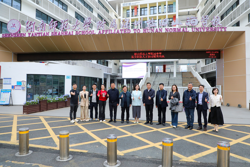 湖南师大附中校长苏建祥、副校长许小平,湖南师大附中体美中心主任、校友会秘书长谭伟,湖南师大附中梅溪湖中学校长张志,深圳盐田山海学校党总支书记王树宏、校长黄月初、副校长陈雄略,以及湖南师大附中长沙校友会、深圳校友会、香港校友会代表等齐聚一堂,共探人才培育新路径,共筑校友联动新阵地。