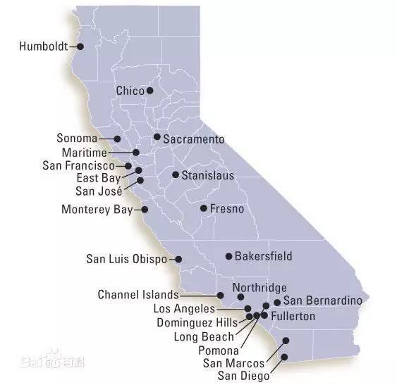二、加州州立大学有23个校区, 比如: