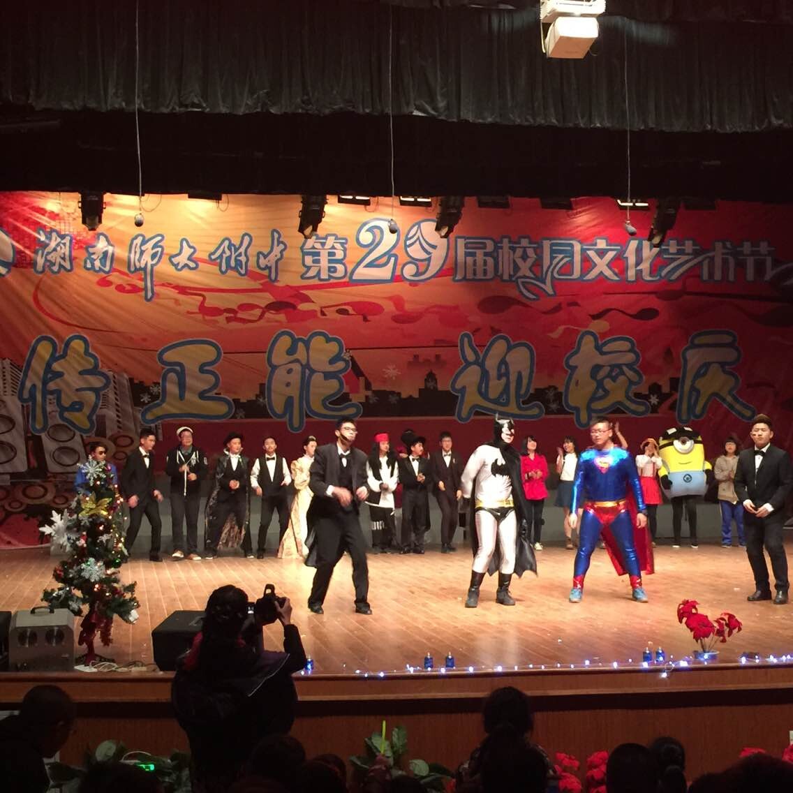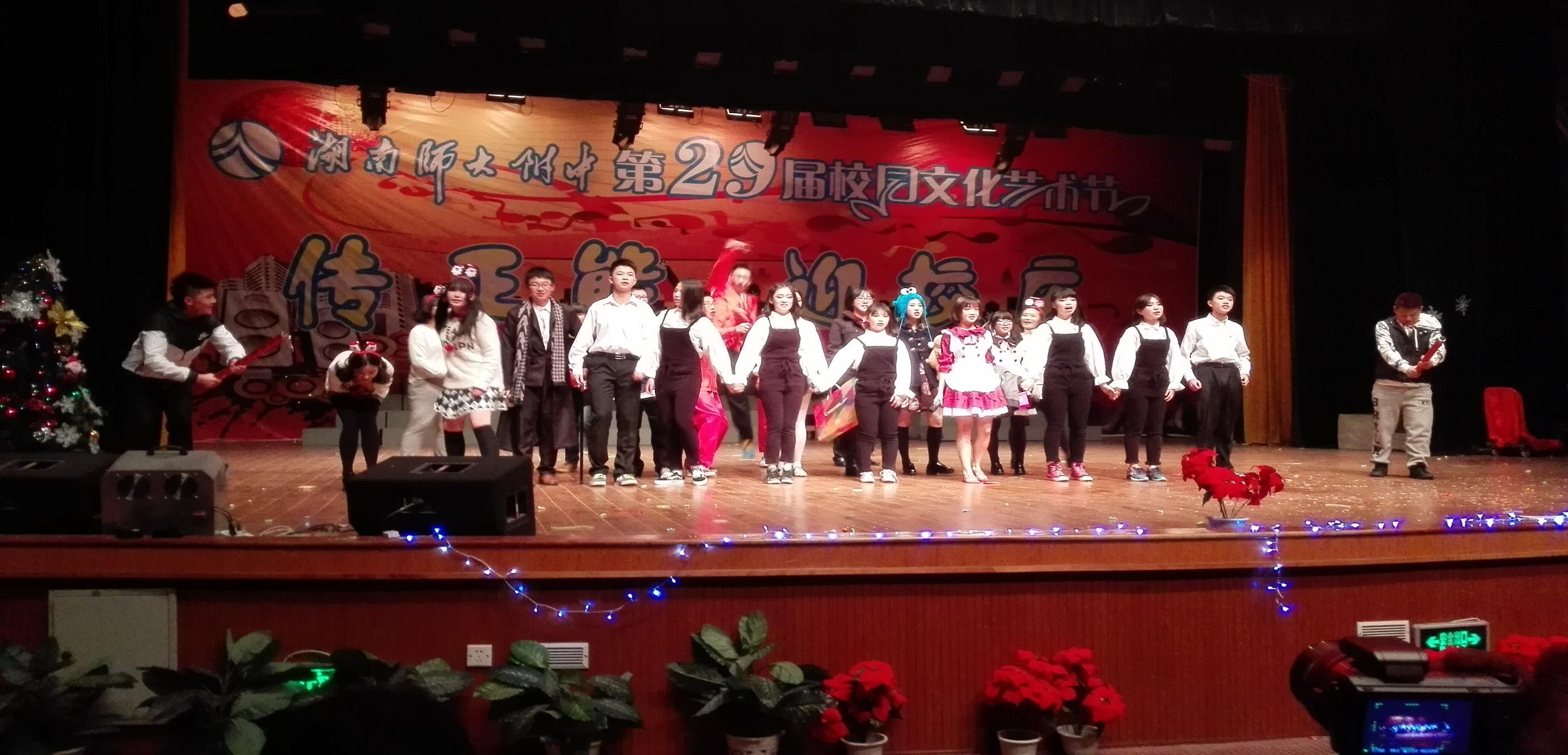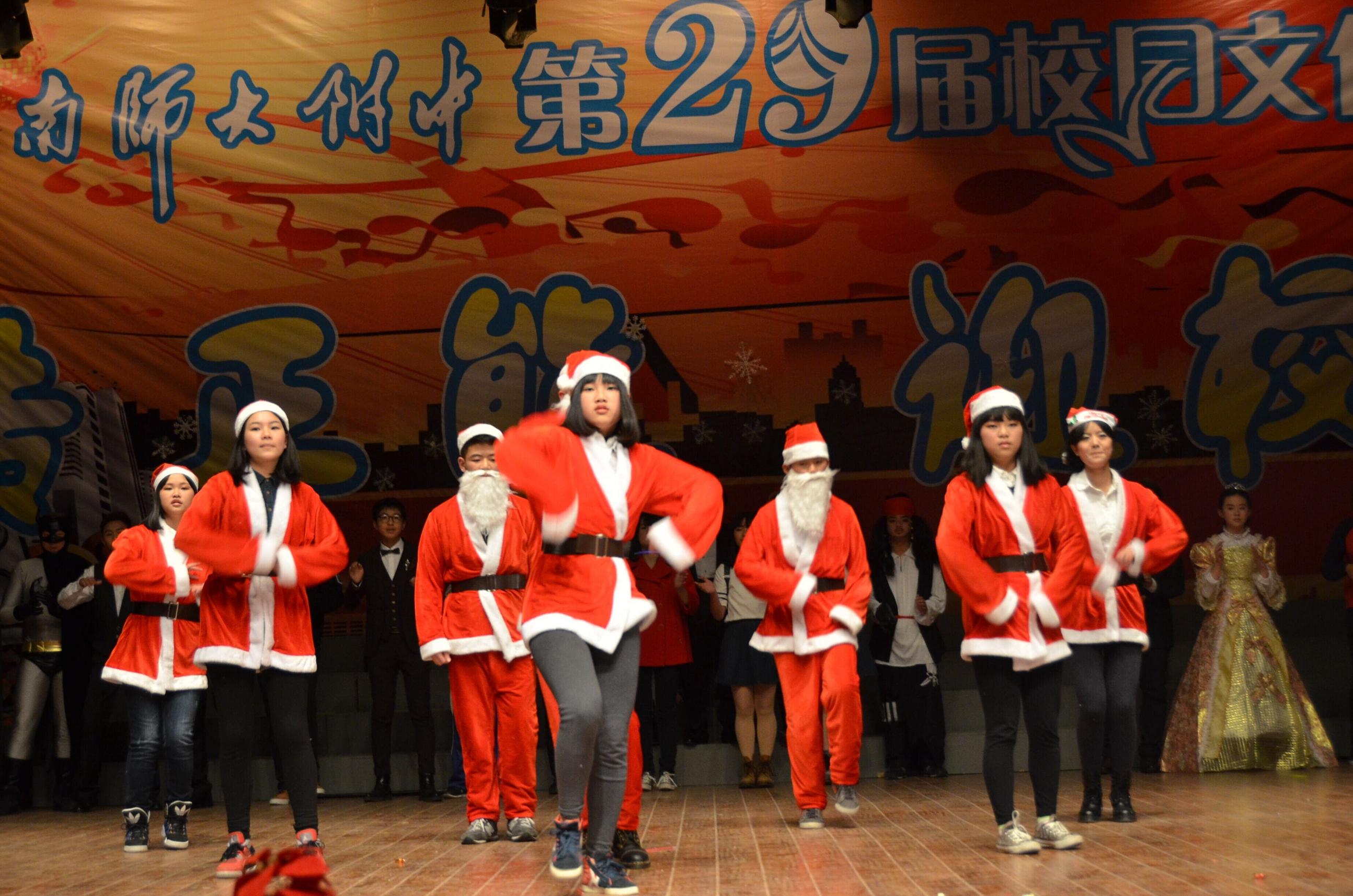圣诞迎新晚会于23日晚在师大附中学生活动中心圆满结束,学生们