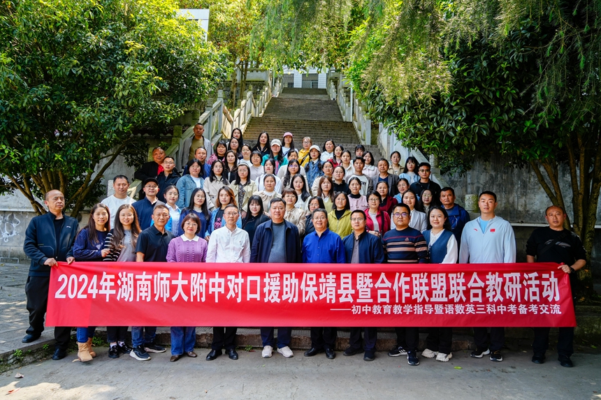 保靖县毛沟中学为湘西州最大的农村初级中学。2023年9月,黄雅芩、邓轶轩老师赴毛沟中学支教,针对教师队伍普遍年轻,亟需加强专业指导的现状,积极引入附中资源进行教育帮扶。如黄雅芩通过腾讯会议组织毛沟中学、保靖民族中学、花垣边城高级中学约70名教师和附中本部教师进行线上联动,研讨“融通课程”的开发和实施,鼓励老师同向同行,培根铸魂。