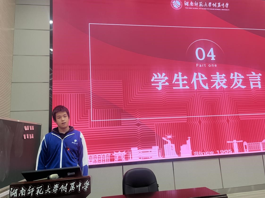 省队队员、湖南师大附中高2502班学生刘啸宇同学作为学员代表发言。他对能有机会参与如此高端的集训表示感谢,并分享了在竞赛学习经历中所遇到的各种“酸甜苦辣”,表态在接下来的集训与往后的学习中定会全力以赴。
