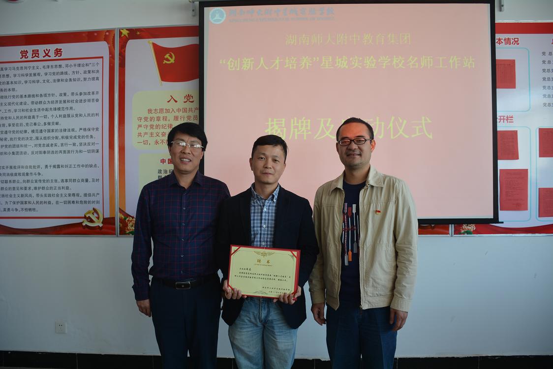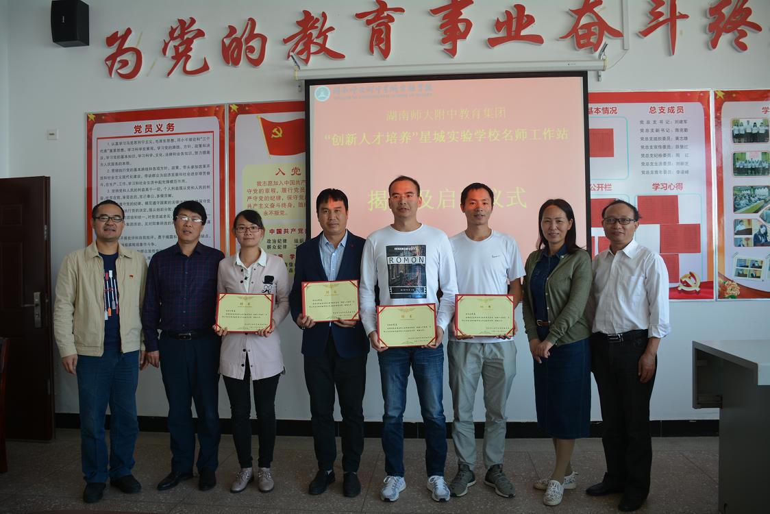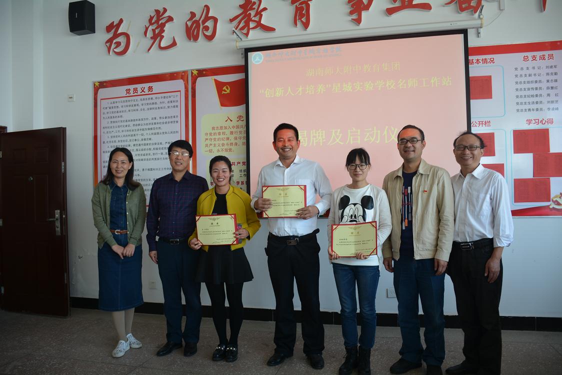 9月13日下午,湖南师大附中教育集团“创新人才培养”名师工作室成立大会在湖南师大附中图书馆报告厅隆重召开,湖南师大附中星城实验中学有18名教师入选成为集团首届名师工作站成员。在会上,校长刘新芝代表湖南师大附中星城实验中学接受授牌,杨运忠等5位工作室首席名师接受聘书。