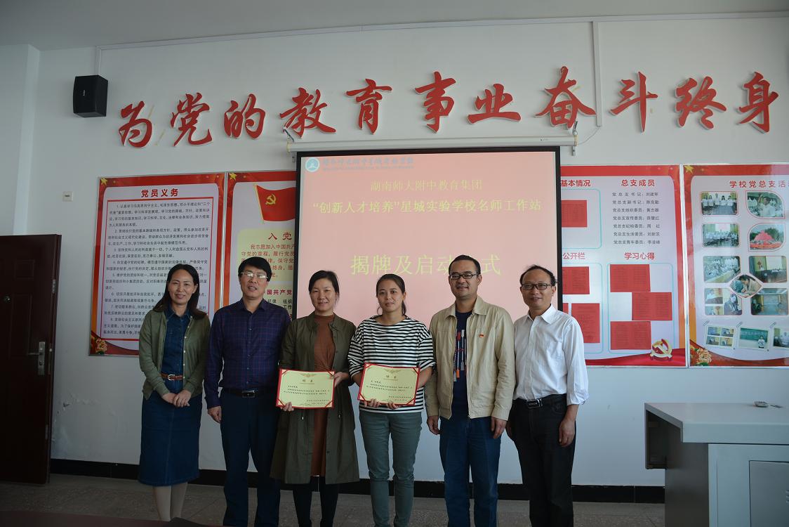 10月12日下午,湖南师大附中教育集团“创新人才培养”名师工作室——湖南师大附中星城实验中学工作站揭牌及启动仪式在湖南师大附中星城实验中学一会议室举行。湖南师大附中星城实验中学校长刘新芝,副校长舒玻、薛慧红,办公室主任周红,教务处主任于慧枚出席,全体名师工作站成员参加仪式。