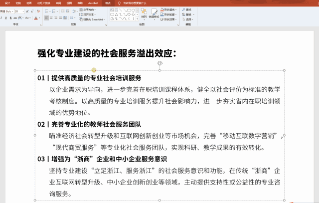 当我们的PPT中文字很多的时候,我们可通过一些排版技巧来使我们的PPT看起来更加简洁一些!