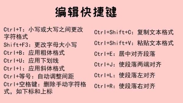 还有一些编辑快捷键也很好用,小伙伴们可以根据自己的需要进行记忆~