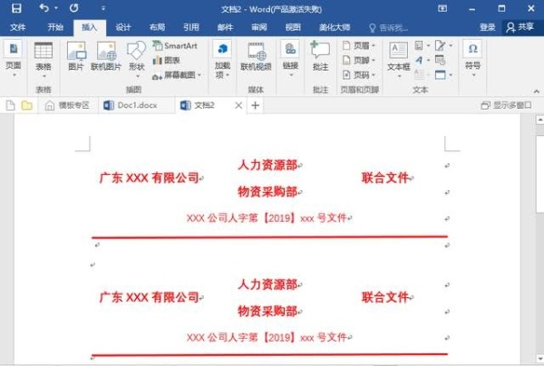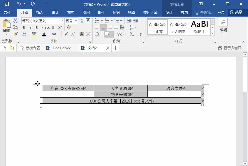 首先,我们在Word中插入一个3x3的表格,然后其中的将部分单元格合并。很多小伙伴在做红头文件的时候不知道先插入表格,这样后面要调整版式的时候特别麻烦,特别是对齐,很难对得准,借助表格排版就会好很多!具体操作如下: