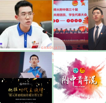 步入高三,我也始终没有完全放下工作,作为湖南省中学生代表参加中华全国学联第二十七次代表大会,凭借呕心沥血编辑的一整本个人资料和5分钟的演讲被评为“长沙市最美中学生”,临近高考重操旧业给老师们的毕业纪念歌填词,直到高考结束后我还在湖南省党史学习教育成果汇报展演活动中发着一个高中生能够发出的点点微光……