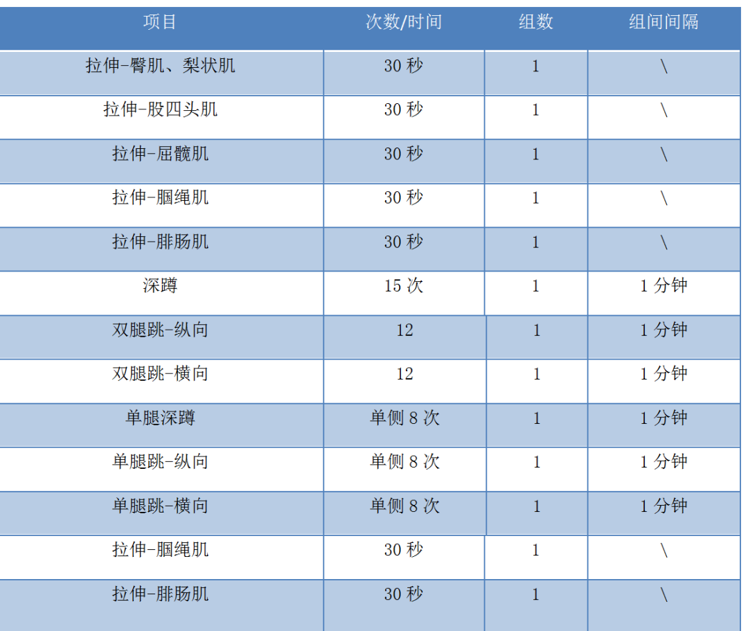 双腿跳-横向 | 12 | 2 | 1分钟 |