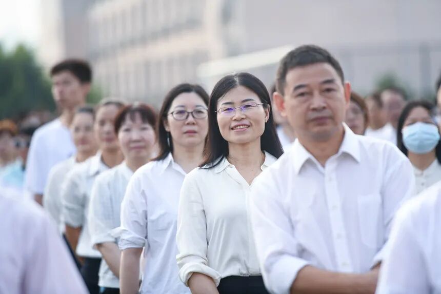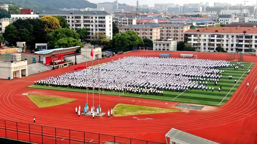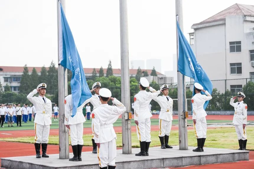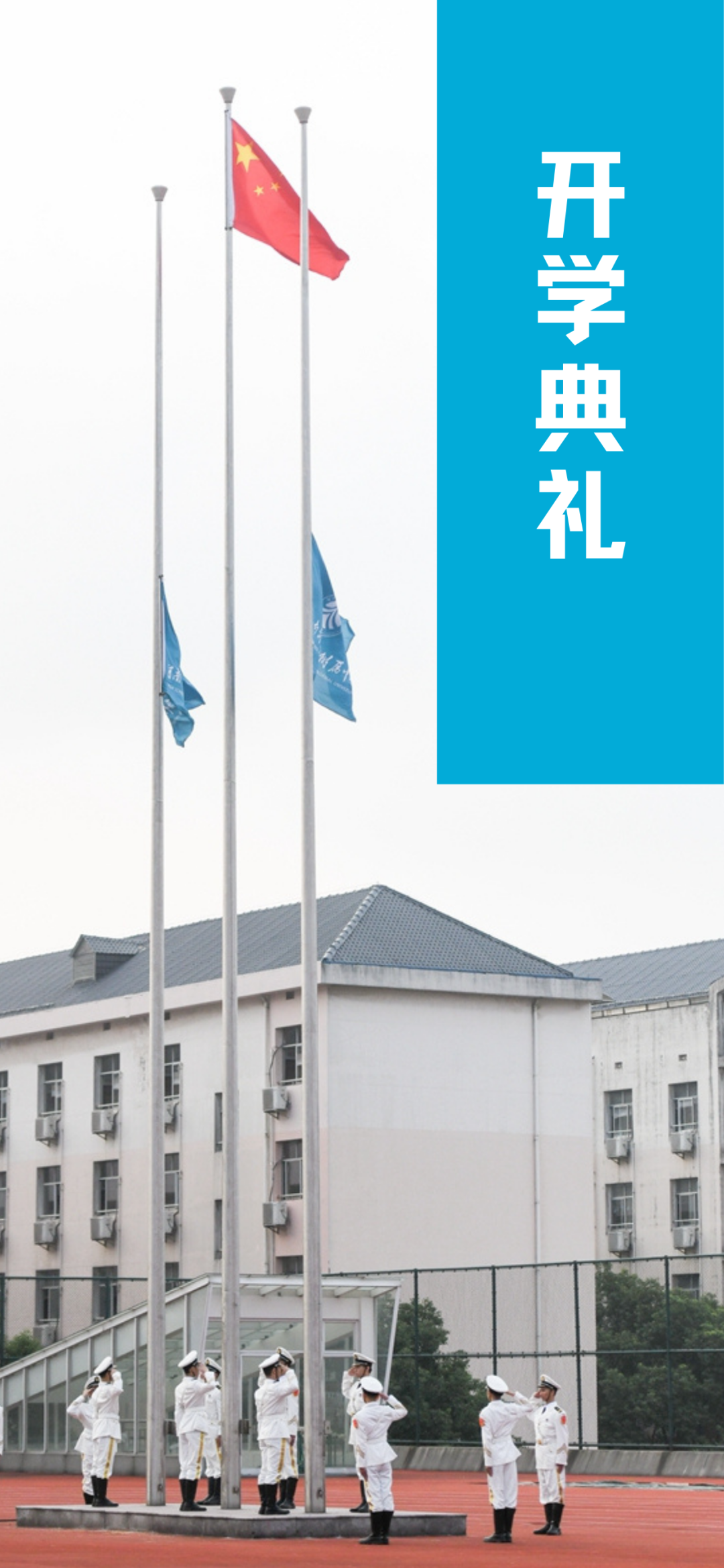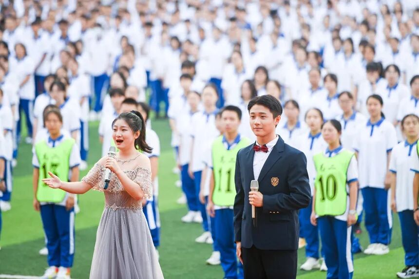 首先举行庄严的升旗仪式,奏唱国歌、校歌,国旗仪仗队升起国旗、校旗。