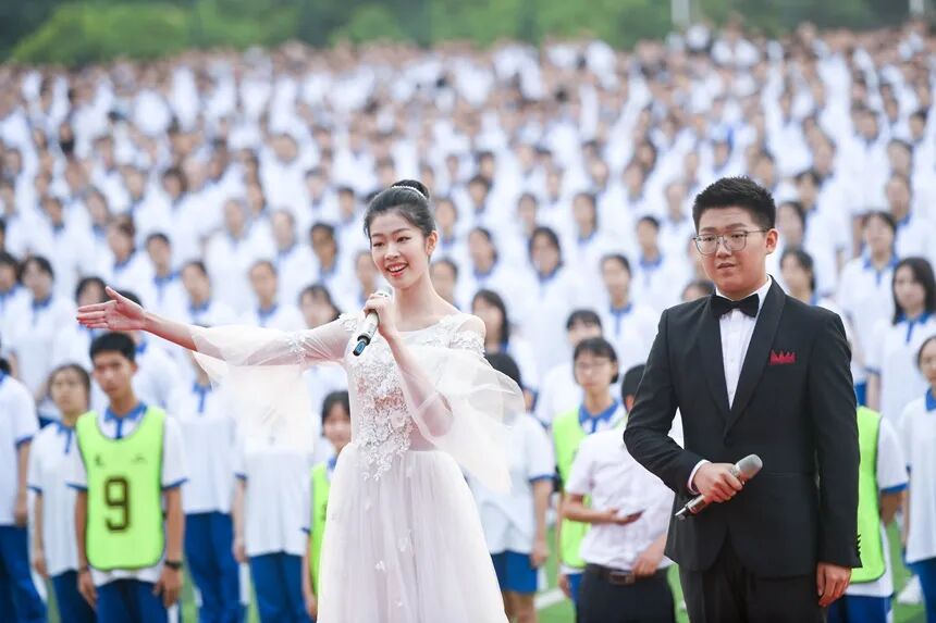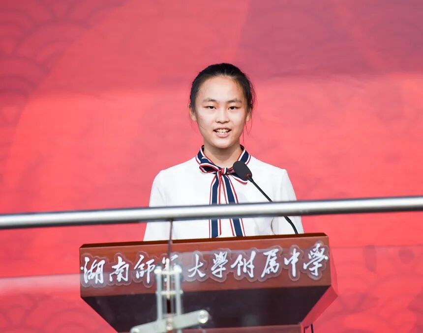 高一新生代表何沐祺从一段自己的亲身经历谈对“攀登精神”的理解,她号召所有同学一起努力,蜕去年少的脆弱,将胆识和勇气、坚强和毅力化作坚硬的翅膀,振翅高飞、乘风破浪。