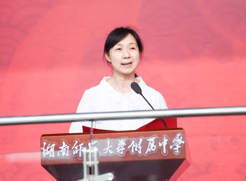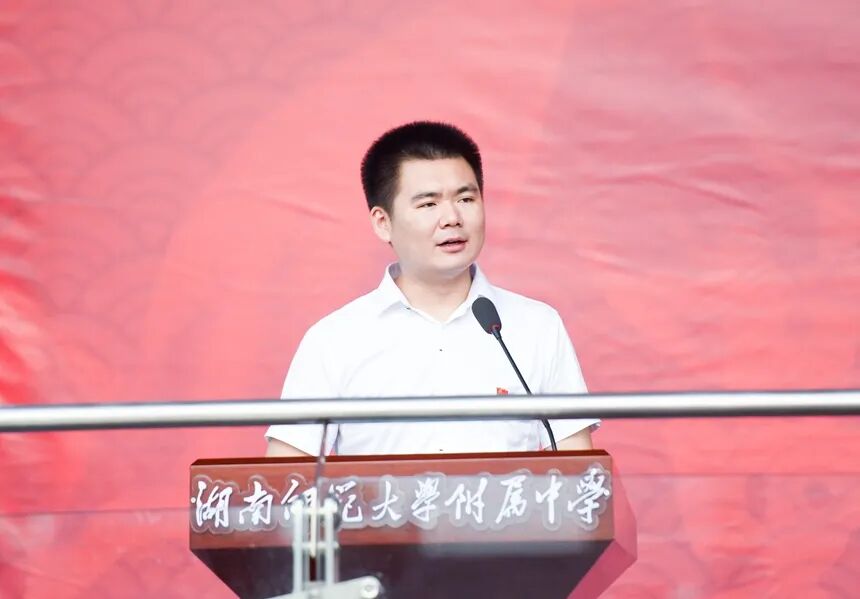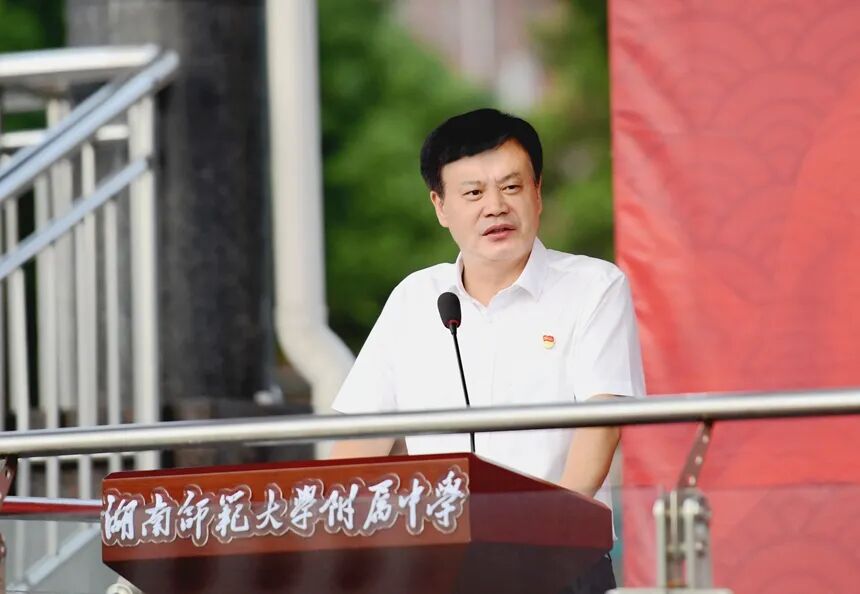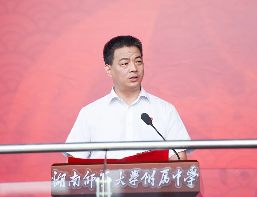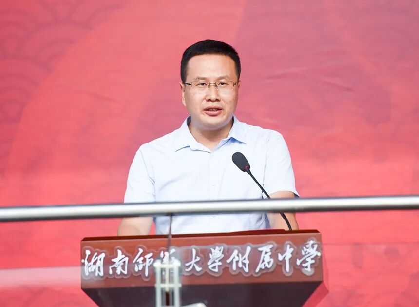 家长代表牛轶峰点赞湖南师大附中给家长提供了更好的育人平台,他表示要进一步落实“三全育人”的基础责任,真正实现全员育人、全过程育人、全方位育人,做好学生的榜样,真正实现学校、家庭、社会和环境共同育人的高效融合和有机统一。