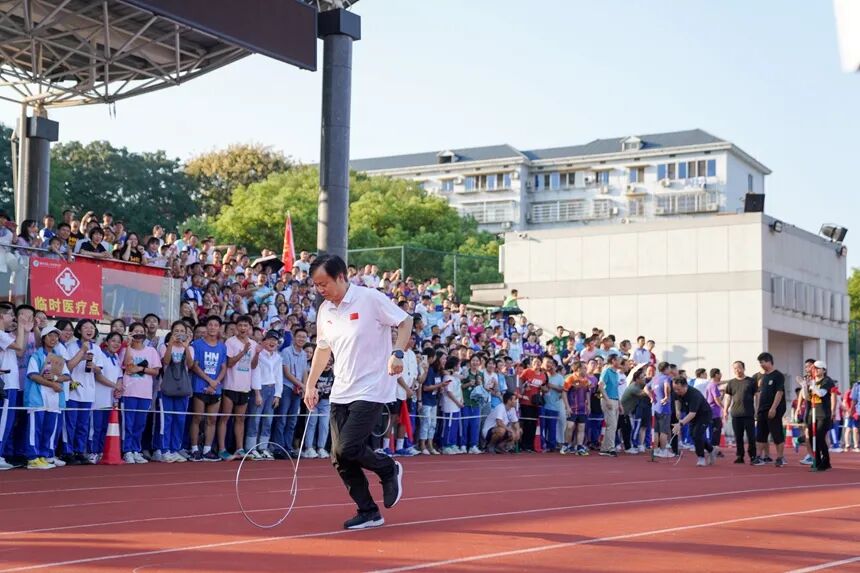 “体育承载着国家强盛、民族振兴的梦想。一代代体育人,为实现中国体育强国梦而艰苦奋斗、自强不息,也希望同学们更支持体育事业发展,内化于心,外化于形,能由衷自豪地高呼‘活力青春,强国有我’!”苏建祥寄语全校学子。