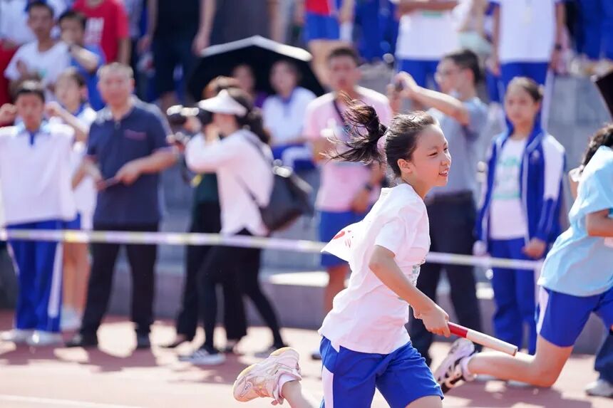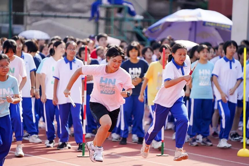 开幕式上,学生组建了致敬奥运方阵,把向奥运健儿们的敬意编织成美丽的花环,旨在学习奥运精神。侯志慧在发言时表示,体育运动应该是全民的事业,每个人都要有锻炼意识。她倡导同学们积极参与体育健身,养成积极向上的生活方式。“东京奥运会虽已落下帷幕,但比金牌更可贵的是奥运向世界所传递的体育精神。”侯志慧鼓励附中学子在学习生活中发扬吃苦耐劳、奋进拼搏的奥运精神,为实现民族复兴之大器努力奋斗。