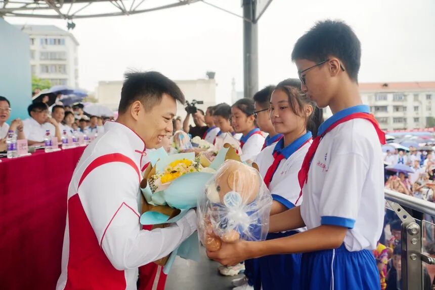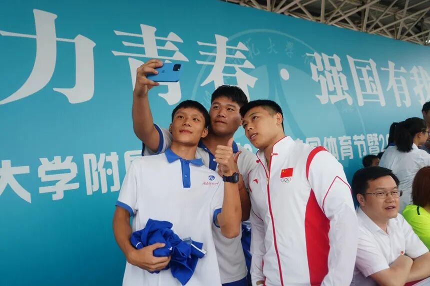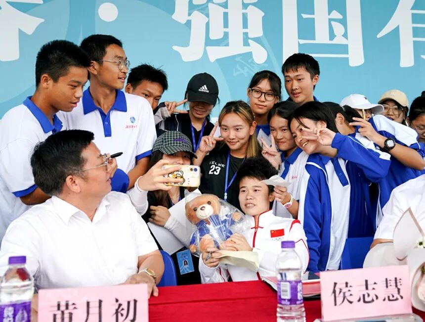 校运会开幕,三大奥运冠军齐助阵,这桩新鲜事今日在湖南师大附中上演。上午,该校举行了第35届校园体育节暨2021年田径运动会开幕式,邀请了湖南省体育局举重管理中心副主任、2012年伦敦奥运会女子举重48公斤级冠军王明娟,2020年东京奥运会举重女子49公斤级冠军、世界纪录保持者侯志慧,2020年东京奥运会举重男子67公斤级冠军谌利军,第十四届全运会女子4×400米接力冠军黄美霞作为嘉宾出席。冠军集结于学校,立即受到了学生的追捧,他们纷纷找“偶像”签名合影,大有附中学子不光用知识武装头脑,也用锻炼强健体魄的气势。