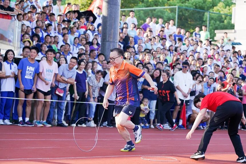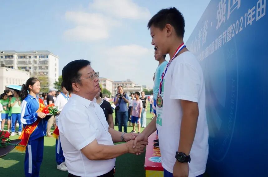 苏建祥在致辞中说,今年,“更高、更快、更强、更团结”的东京奥运会,“全民全运,同心同行”的第十四届全运会,金牌记录高光时刻,年轻“顶流”运动员诠释中国体育新格局。体育兴则国兴,体育强则国强。体育强国的基础在于群众体育。今年9月16日,校长谢永红被国家体育总局授予2017-2020年度“全国群众体育先进个人”荣誉称号,第三次受到习总书记亲切接见。作为群众体育的倡导者和实践者,他带领全校师生开创了学校体育事业发展新局面。