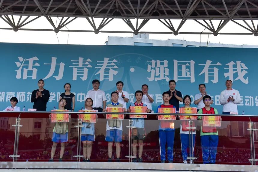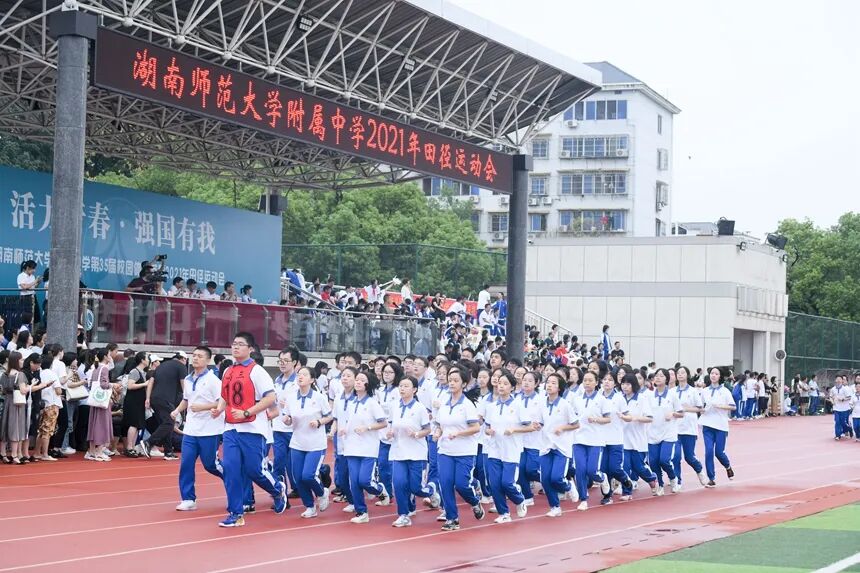 湖南师大附中始终坚持“素质全面,个性优良”的理念,文明其精神,野蛮其体魄。全运赛场上,2021届校友黄美霞同学勇夺女子4×400接力冠军、女子100米决赛第五名;2017届校友刘苏仪与苏炳添同场竞技,获得男子4×100米接力第五名;考入清华大学的2021届校友陈龙获得男子跳高第13名。另外,学校羽毛球队、乒乓球队亦贡献了运动水平与学业成绩双优秀的高水平运动员,多人被“双一流”大学录取。