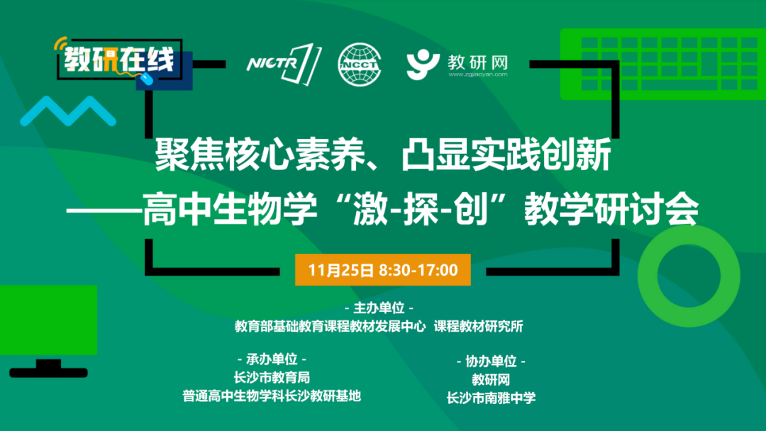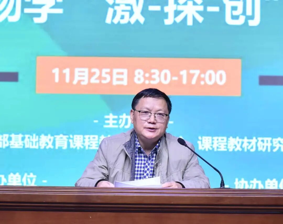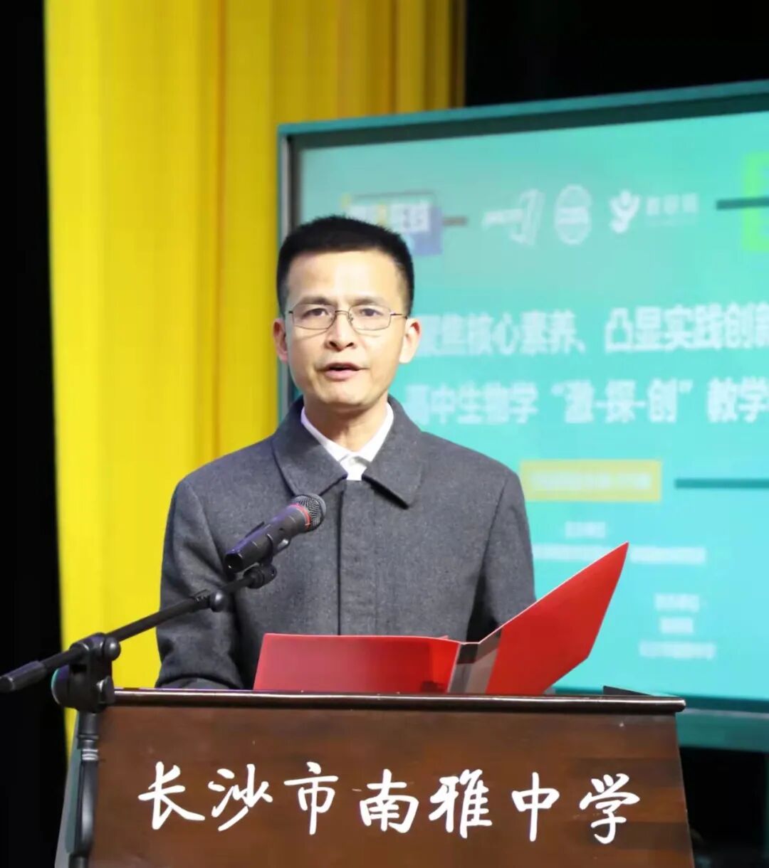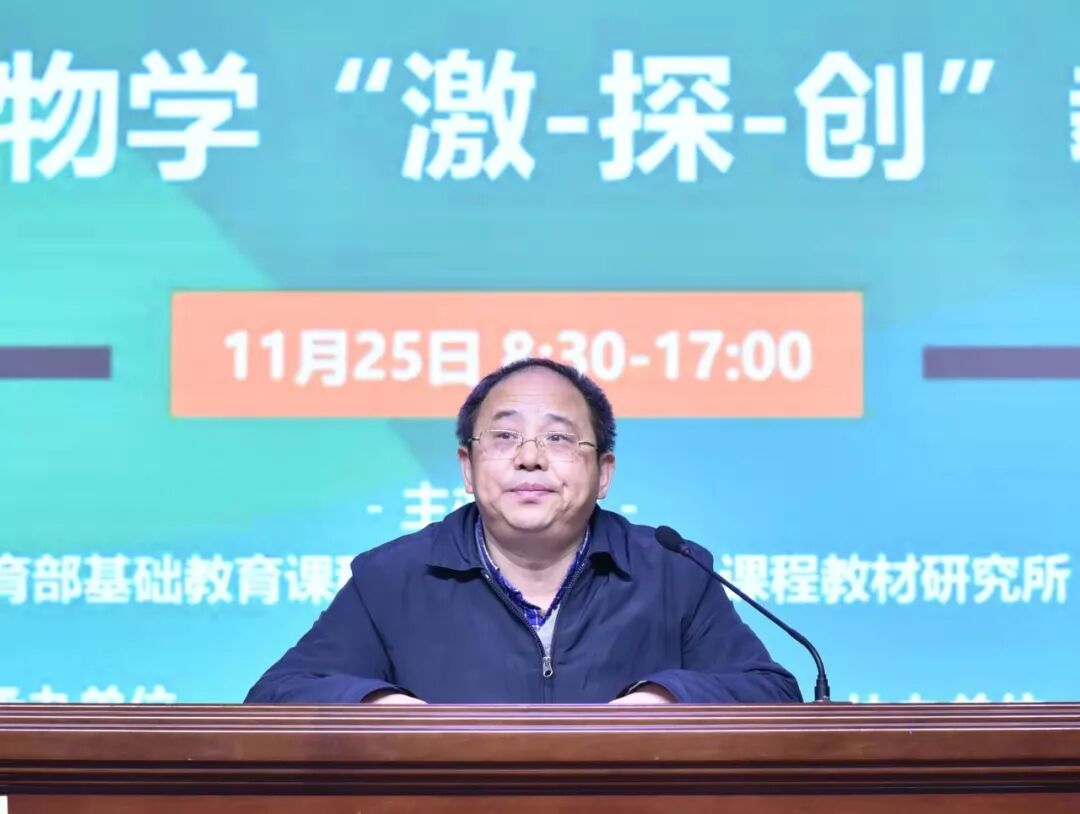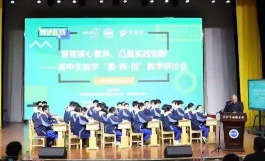 为深入贯彻落实普通高中课程改革要求,进一步推进普通高中生物学科教研基地建设,切实提升课堂教学质量,促进教学评一体化,培养学生核心素养,2021年11月25日,以“聚焦核心素养、凸显实践创新”为主题的长沙市高中生物学“激-探-创”教学研讨会在普通高中新课程新教材实施国家级示范校南雅中学顺利召开。本次会议由教育部基础教育课程教材发展中心、课程教材研究所主办,长沙市教育局、普通高中生物学科长沙教研基地承办,中国教研网、长沙市南雅中学协办。人民教育出版社副总编辑赵占良,湖南师范大学生命科学学院教授、博士生导师段巍,长沙市教科院正高、特级教师,教育部课程中心高中生物学科长沙教研基地负责人孔春生,长沙市一中正高、特级教师高建军,湖南师大附中星城实验中学特级教师黄国强,地质中学正高、特级教师刘海龙,湖南省教育科学研究院基础教育研究所高中室主任、中学生物学教研员曾峰,长沙市教育科学研究院生物教研员朱德华,教育部课程中心普通高中生物学科教研基地成员、长沙市各高中学校教师代表共100余人参加会议。