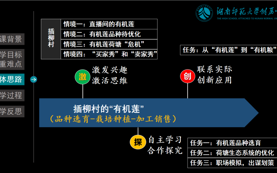 本次课例展示分为现场授课和说课展示两个部分。长沙市南雅中学吴俊文老师带来了《免疫学的应用》现场展示课、长沙外国语学校戴仕武老师和湖南师大附中向阳老师分别带来了《种群密度的调查》和《插柳村的有机莲》两个说课展示。