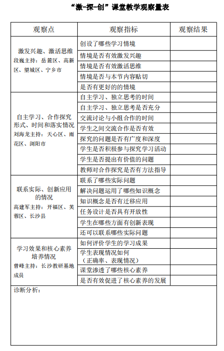 长沙市教育科学研究院生物教研员朱德华详细介绍了“激-探-创”教学观察量表及其应用。并在观课之前,按照观察量表的中“激”“探”“创”“核心素养”四个维度,将与会老师分成四个大组。