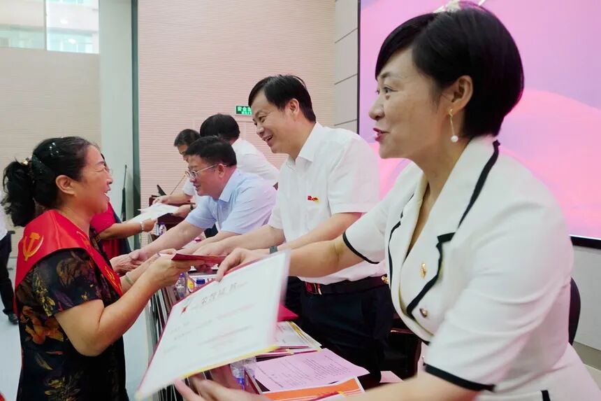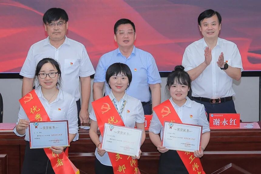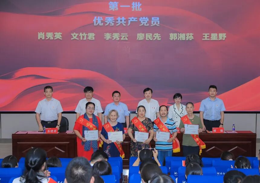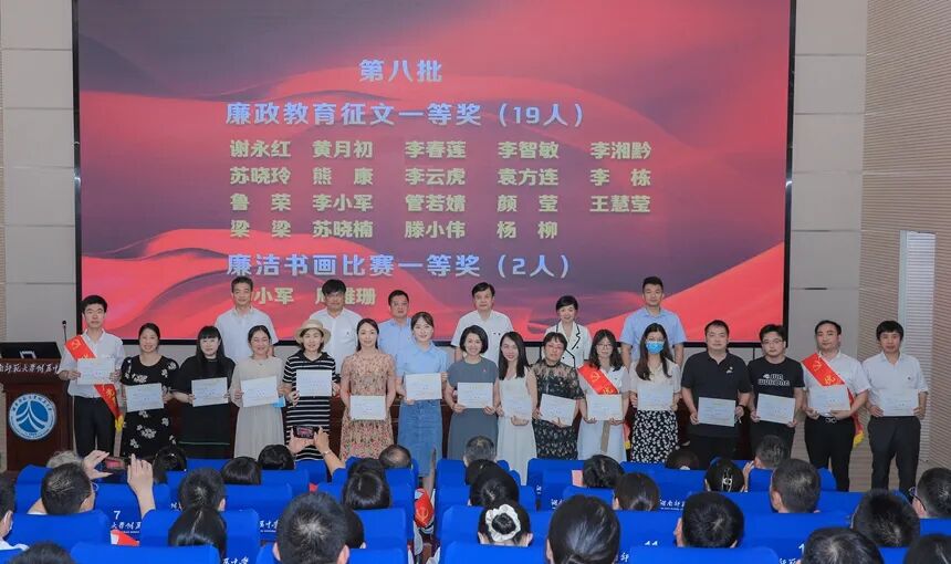 党委委员、校长谢永红宣读了《湖南师大附中关于表彰2021—2022学年度优秀共产党员、优秀党务工作者、先进党支部的决定》、《湖南师大附中2021年廉政教育征文和廉洁书画比赛获奖名单》,获奖的集体代表和个人依次上台领奖。