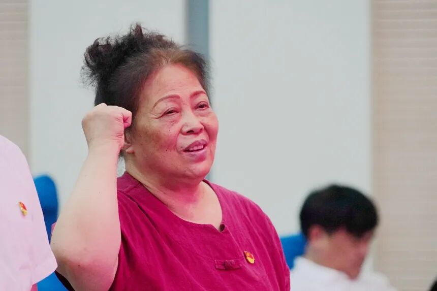 74岁的退休教师张金莲,终于如愿以偿加入中国共产党,在今天的七一大会上宣誓。