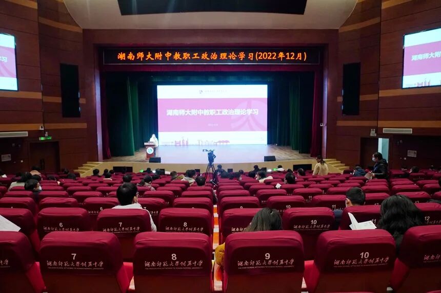 2022年12月9日下午,学校开展全体教职工政治学习,湖南师范大学马克思主义学院形势与政策教研部主任罗薇来到学校学生活动中心,宣讲党的二十大精神。全体教职工参会。罗薇以《弘扬以伟大建党精神为源头的中国共产党人精神谱系》为题,从伟大建党精神的形成、伟大建党精神的深刻内涵、新时代弘扬伟大建党精神三个方面进行阐释,对党的二十大精神进行了深入系统解读。