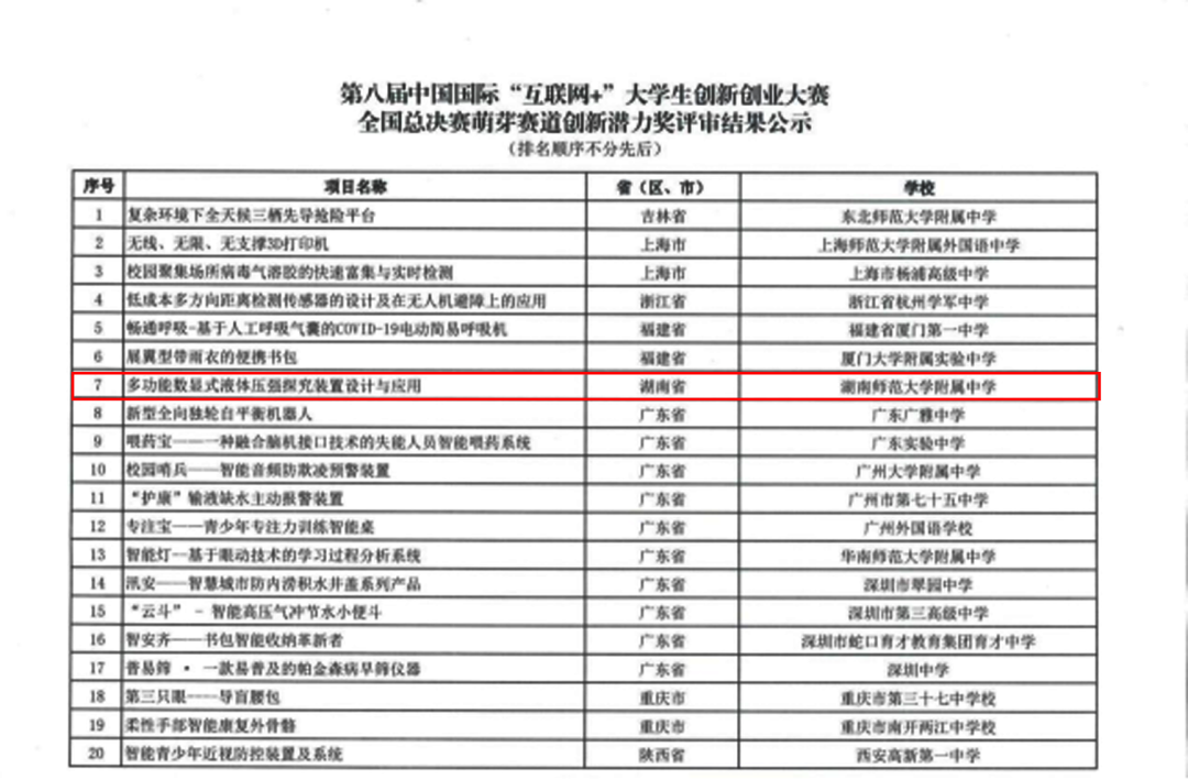 湖南师大附中一直重视创新人才培养,为学有兴趣、学有余力、学有特长、素质全面的中学生在科技创新方面提供强有力的支撑和广阔的发展空间。学校把科技创新作为卓越课程精心打造,加大投入建设科技创新体验平台,引导学生以创新形式认识世界,提出问题、探索问题、分析问题,动手实践,培养批判性思维、合作能力、创新能力。