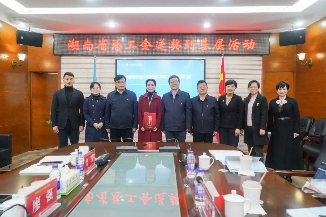 踏着绵绵春雨,湖南省总工会党组成员、省教育工会主席提名人选刘湘凌一行赴湖南师大附中为荣获全国、全省荣誉的先进个人授奖,将党和政府的关怀及职工“娘家人”的温暖送到基层一线,并调研基层工会工作。湖南省总工会女职工部部长尹素云,省教育工会副主席提名人选邓曼,省教育工会副主席易丽鹏,省教育工会二级调研员、办公室主任朱冠星,省教育工会普教工作部副部长(主持工作)龙培和省总工会女职工部二级主任科员李燕参加调研。湖南师大附中校长谢永红,党委书记黄月初,副校长、工会主席陈迪勋,纪检书记李春莲,副校长廖强,党委委员、后勤服务和安全保卫中心主任李智敏陪同调研。
