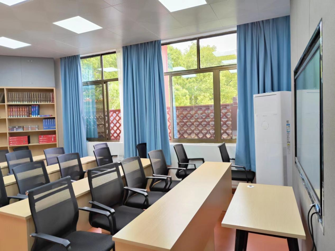 之谟图书馆名师工作室重新装修,配备高清电子屏,各名师工作室开展研修活动更为便利。