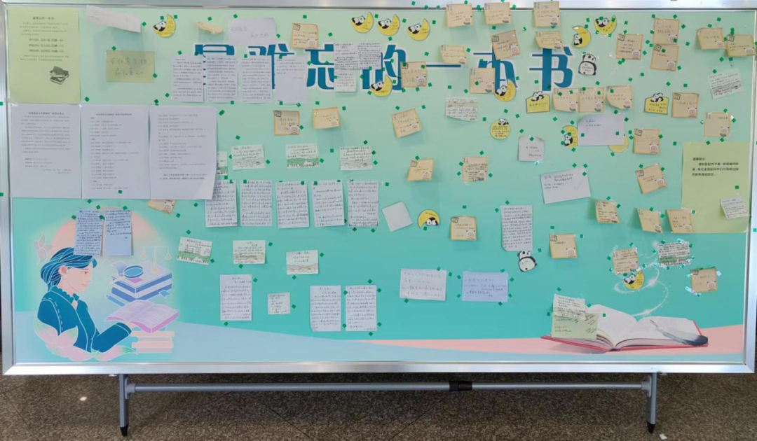 为营造校园书香氛围,激起师生阅读热情,活跃馆内读书人气,图书馆在大厅摆放了一块主题为“最难忘的一本书”空白板供师生互相交流分享,积极推荐自己心仪的著作,共同营造校园浓厚书香氛围。