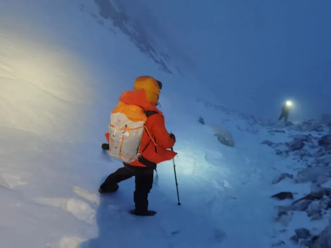 2023年4月15日,徐卓媛抵达尼泊尔,在徒步8天后抵达珠峰大本营,开始了为期18天的登峰适应性训练。北京时间5月14日22:00,徐卓媛从C4营地(海拔7950米处)出发,正式向着峰顶冲刺,经过10个小时的努力,徐卓媛于北京时间07:57成功实现登顶梦想!