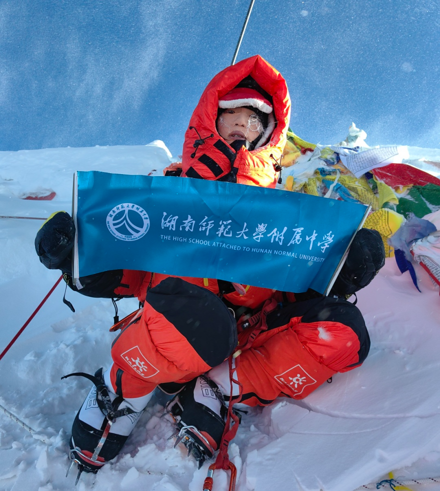 北京时间5月15日07:57,一条喜讯从“世界之巅”喜马拉雅山脉传来——年仅16岁、湖南师大附中徐卓媛同学成功登上了珠穆朗玛峰的峰顶,成为从南坡登顶珠峰的最年轻中国登山者。