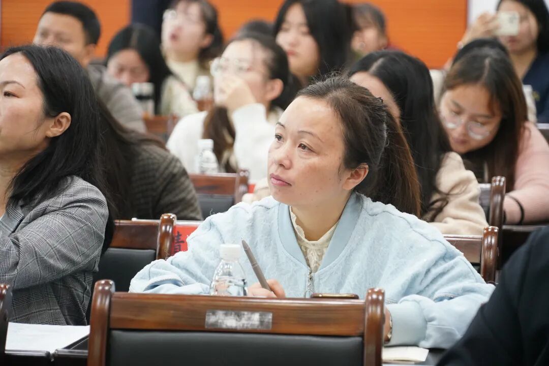 黄月初作总结讲话。他肯定了授课教师扎实的教学功底与专业素养,并提出了宝贵的建议。他强调,要更新观念,做到还教于学,双创新构;要校正目标,努力达成学生核心素养;要转化行动,善于运用自主加借鉴的方式;要做好衔接,注意学段的“瞻前顾后”与“下延上接”。